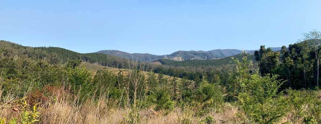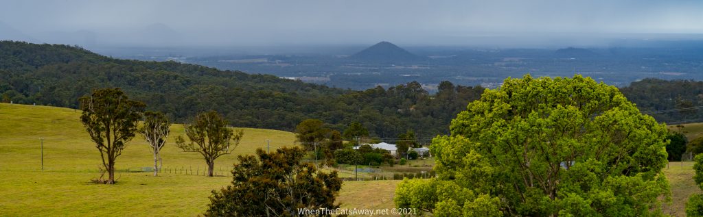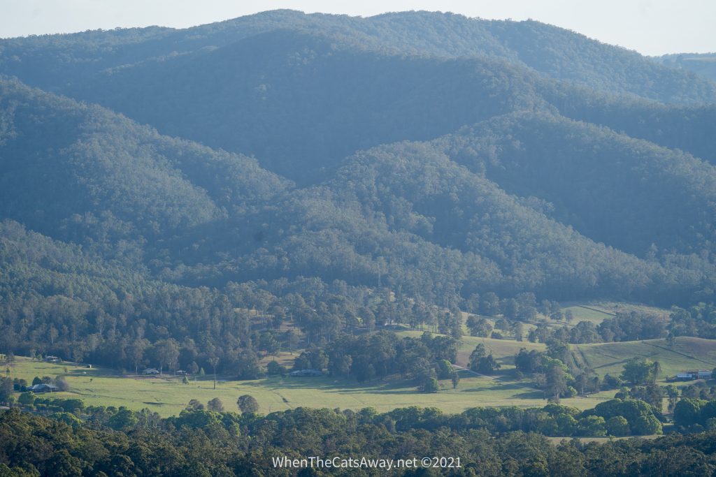 Our walk starts with a lookout with views over the Obi Obi ValleyLooking across the valley