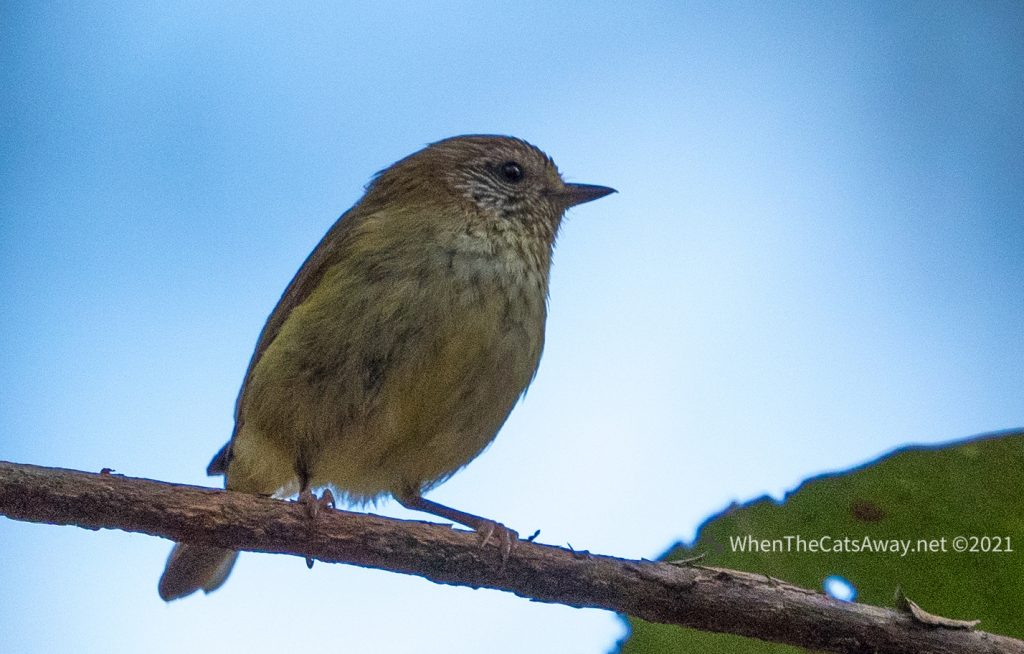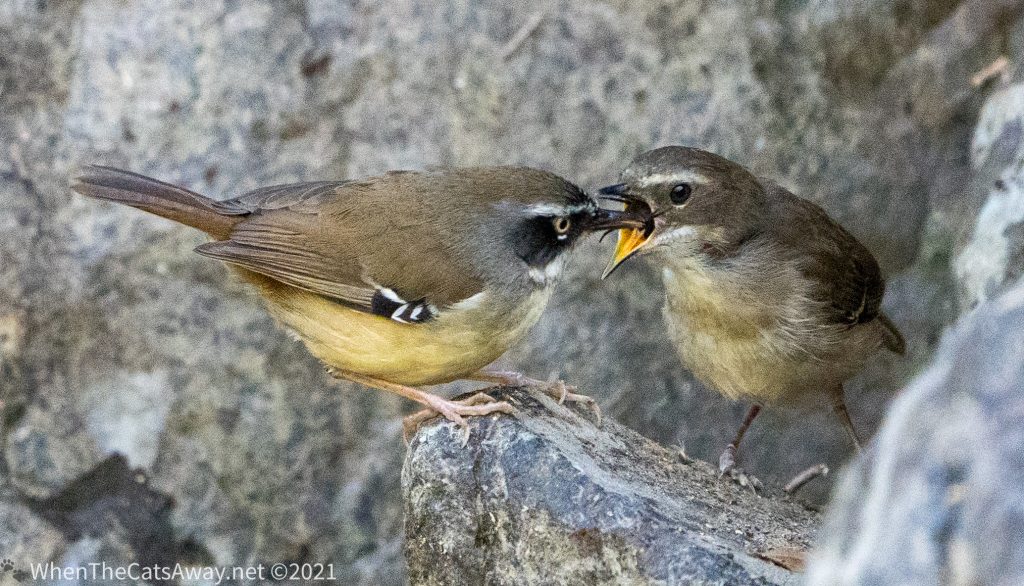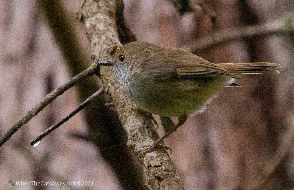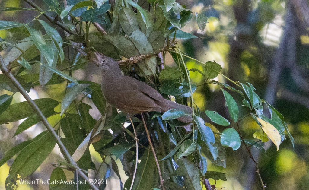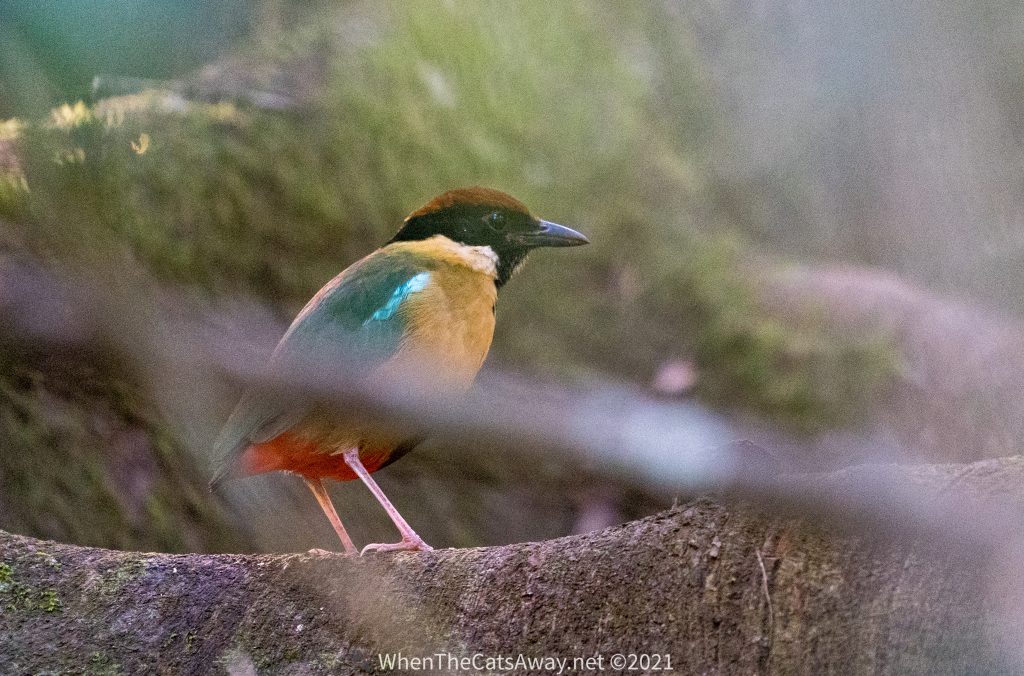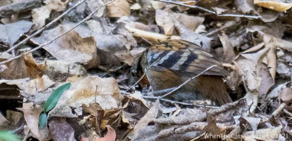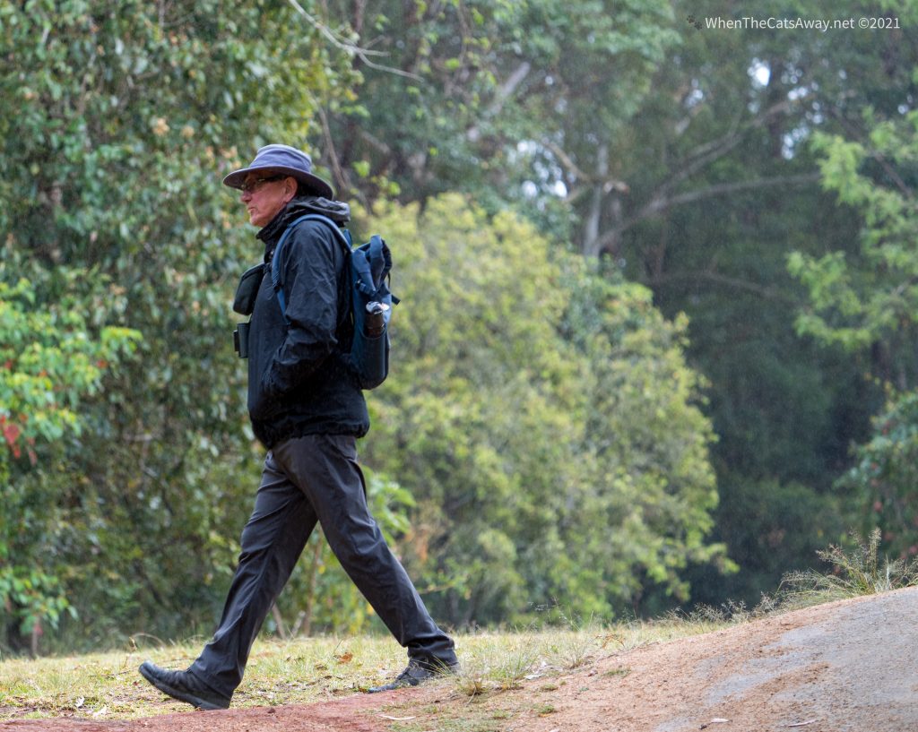 Mr A ready for action on one of our walks to an old gold mine shaft (map)Not a peaceful place, the rainforest is noisy, full of bird calls and the constant hum of insectsHard to see, a ground dwelling Longrunner bird rummaging through the leavesA gorgeous Crested Shrike-tit flies in for a visitPhotographing birds up in the treesA Rufous Shrikethrush Large-billed ScrubwrenA White-browed Scrubwren feeds its fledgling a rather large beetle Many butterflies add a touch of colour to our walksA Noisy Pitta – so exciting to capture this photo of this colourful ground dwelling bird in its natural habitat.