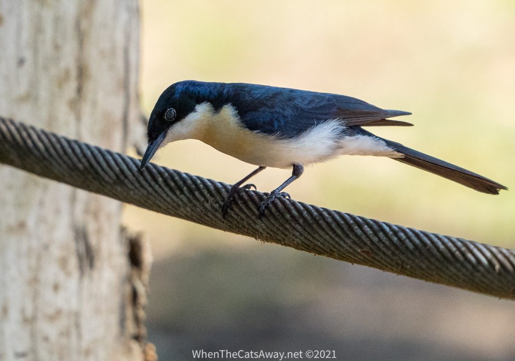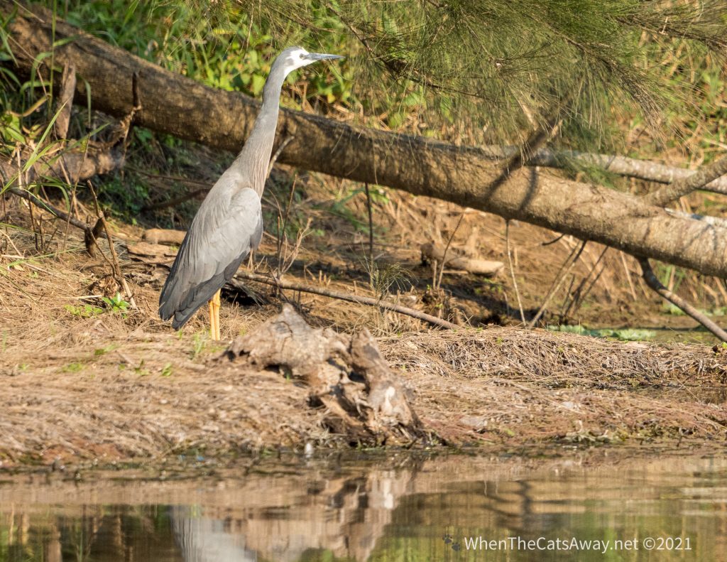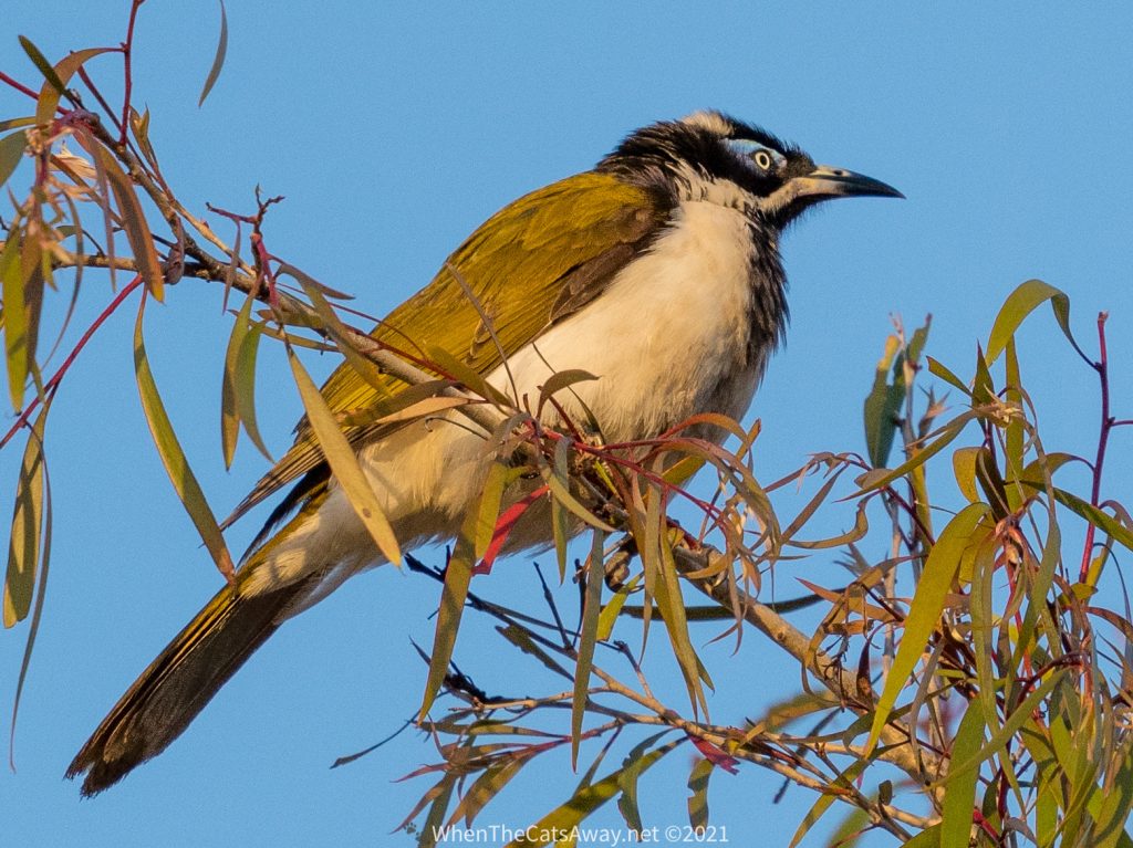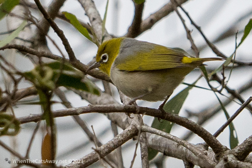 A White Faced Heron captures a Yellow Bellied Three-toed Burying Skink (that’s a mouthful!)The Skink tries valiantly to escape, but becomes dinner in a snapA Magpie Lark sitting on its mud nest over the lagoonA characterful female Superb Fairywren – what she lacks in blue she makes up for in attitude She leaps from her bough to snatch a snack mid airA Silvereye sings melodiously from the top of a tree