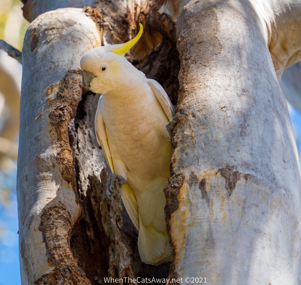 A gorgeous non-venomous Diamond Python passively makes its way through the undergrowthVariegated FairywrenGood little hunter…some sort of black insect on today’s menuA tiny seed-eating Red-browed FiretailA Sulphur Crested Cockatoo emerges from her nest holeJuvenile male (non breeding) Fairywren