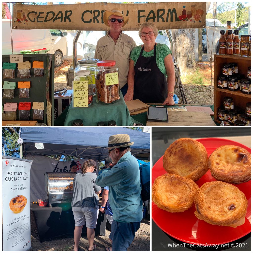 Our friends Phil and Libby also knew the couple running Cedar Creek Farm’s stall selling all kinds of jams, preserves and sauces, most being sugar-free (and no artificial sweeteners or preservatives) and packed full of interesting native ingredients. We left with some tasty sounding salad dressing, lime chutney and a home made tomato ketchup.