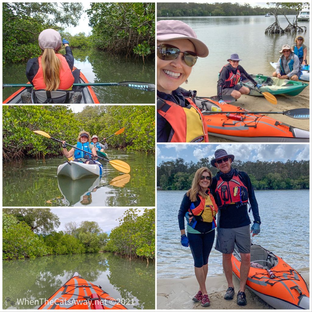 The following morning was Mr A’s birthday. After several surprise calls, we drove a short way to the Noosa River and launched our inflatable kayak beside the North Shore Ferry for a paddle. It was a beautifully calm morning, not too warm and a few birds around, including Striated Herons, White-faced Herons, Pied Cormorants, and Mangrove Honeyeaters.