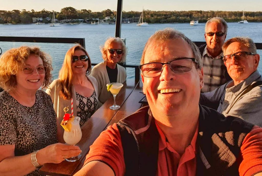 Friday’s celebratory activity was an afternoon’s sunset cruise on the Noosa River, where we were joined by Ray and Wendy as well as another couple we have met through our travelling lives, Rhys and Marsha.