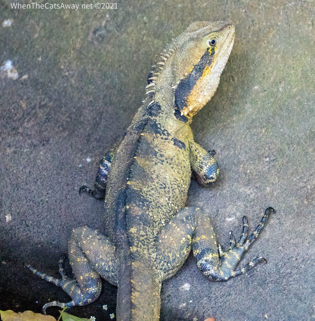 A lounging lizard? An Eastern Water Dragon up on a treeMr A picking his way along through the bushThe story of the camp