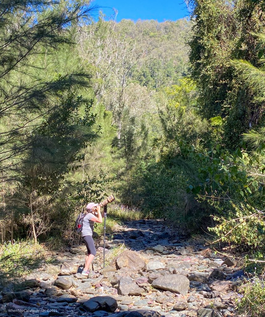 Imbil State Forest and the Charlie Moreland Campground are about a 15 minute drive from Kenilworth, and another location you can walk from. We combined two short walks, the Little Yabba and Piccabeen circuits which took us away from the busy camping area (we estimated around 100 people by the number of caravans, whizz-bangs (camper vans!) camper trailers, and tents) and over a small creek and into the forest. Despite the crowds at the campground, once we left the small day visitor car park and crossed the creek, we didn’t see another human for more than 2 hours!