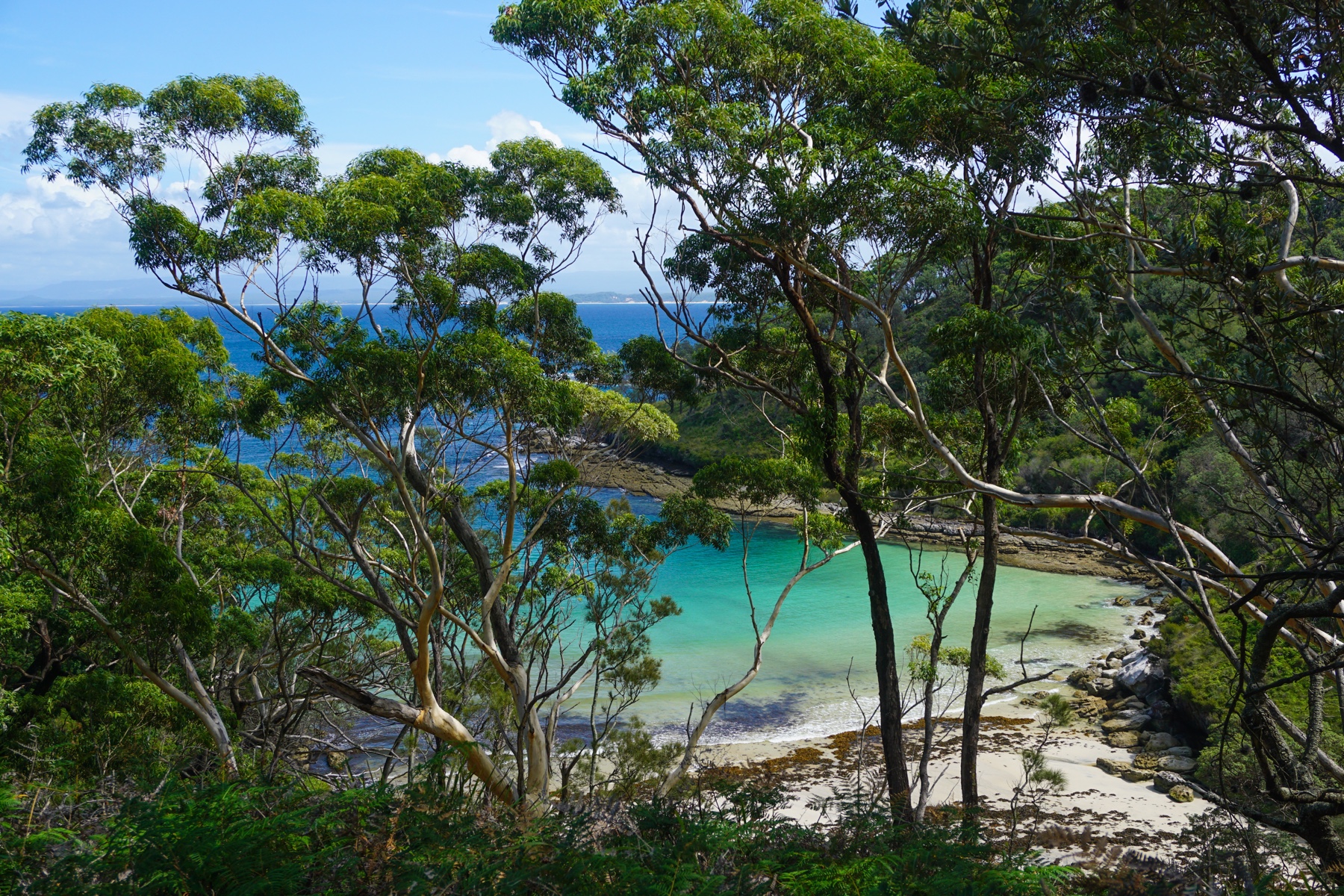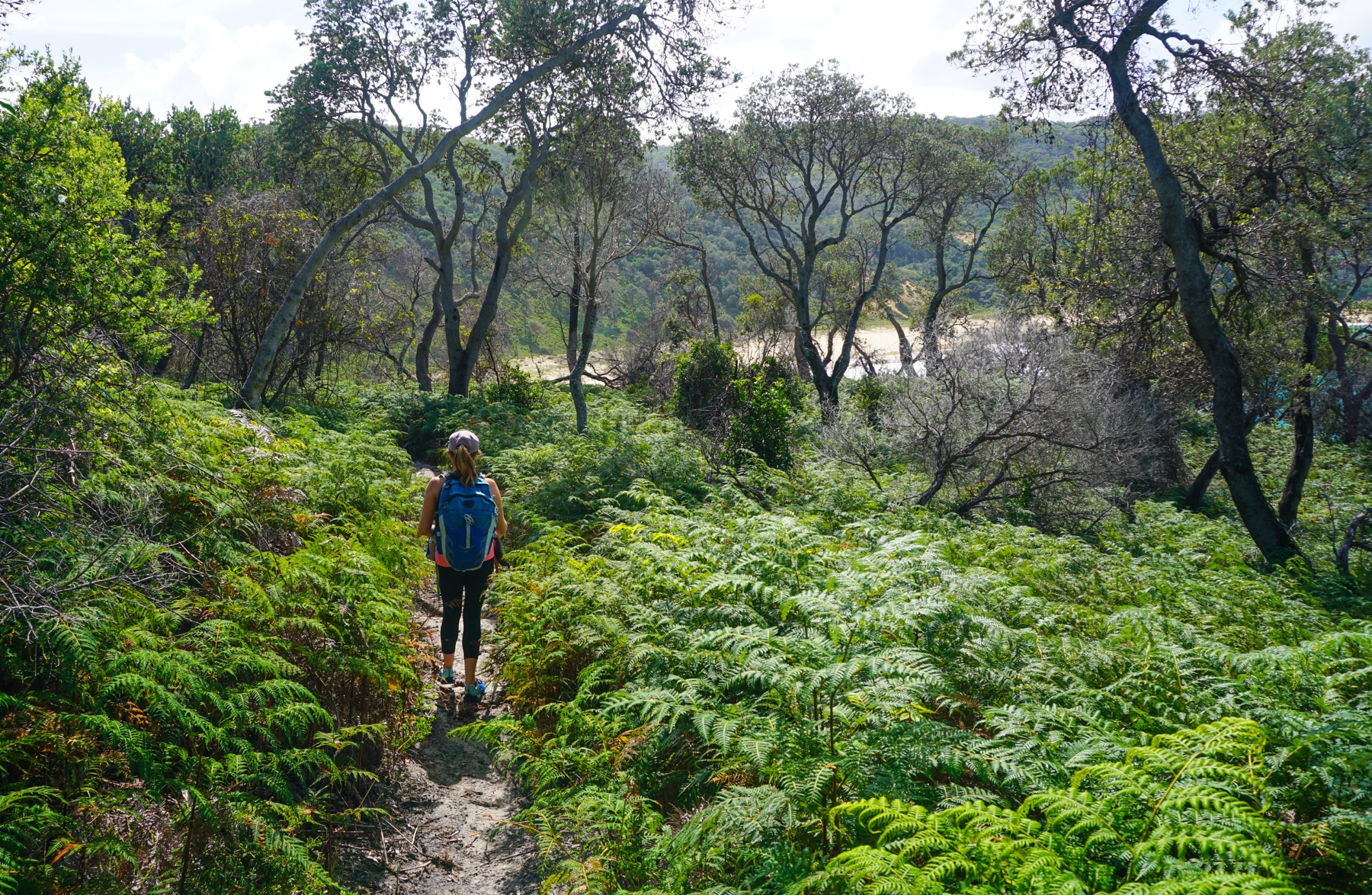 So Thursday saw us driving up the highway and crossing the border in to New South Wales. This part of north-eastern Victoria/south-eastern NSW is really stunning, with tall gum trees lining the road, lush with sub-tropical palms, climbing creepers, tree-ferns and colourful parrots streaking across the road in flocks, screeching. This is the Nadgee Nature Reserve (in NSW)/Croajingolong Wilderness area (in Victoria), together forming one of the twelve World Biosphere Reserves in Australia. These areas are internationally designated to be protected and demonstrate a balanced relationship between people and nature – much like already existed before Europeans landed in Australia. Looking at the map you can see this region is very undeveloped and the few tracks through the reserves largely follow paths forged by the first Australians over several thousands of years visiting this region.