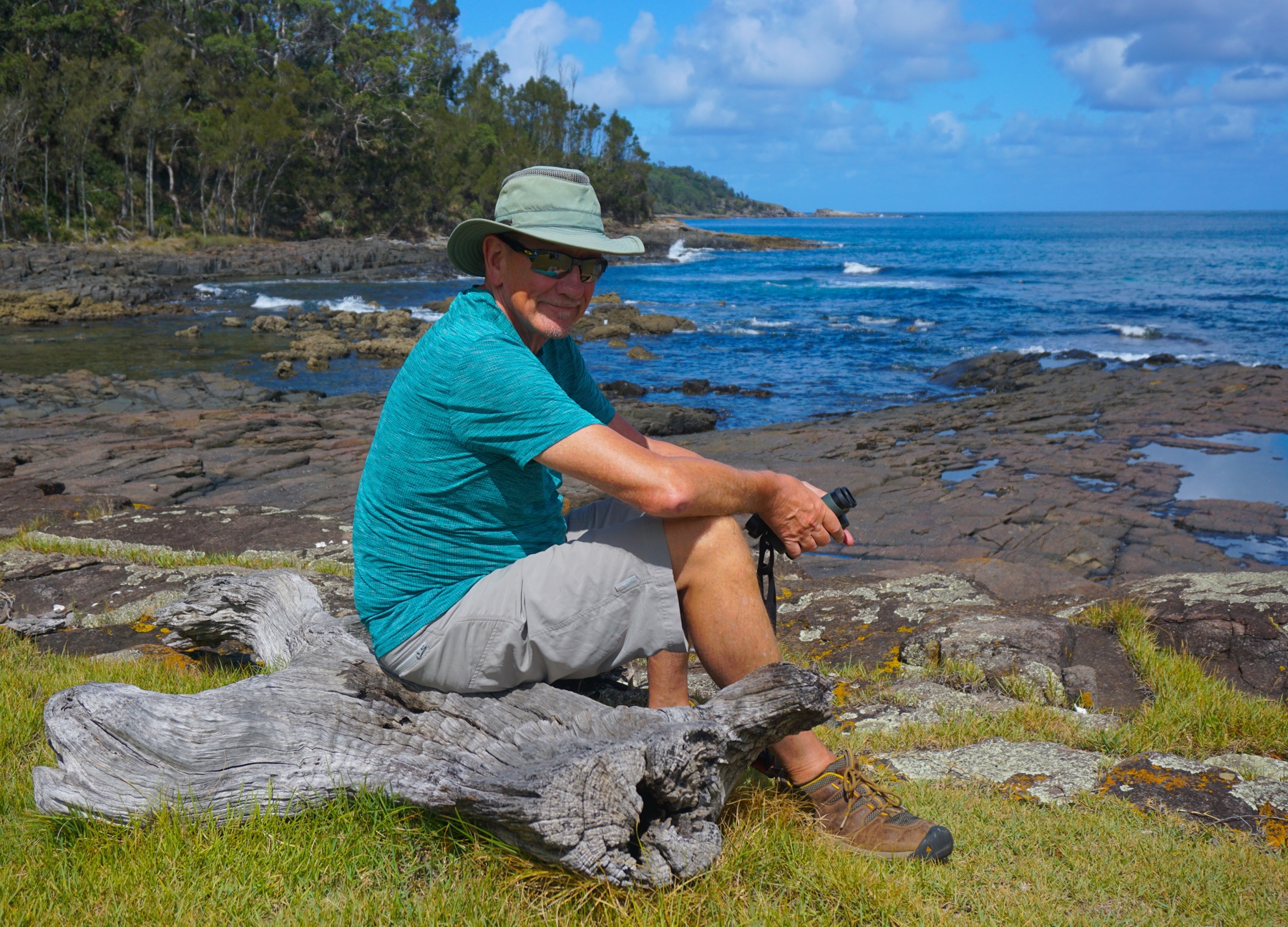 Wonboyn Lake is famous for its oysters, with at least one producer having won awards in Sydney for its tasty mollusks. We bought a couple of dozen small unopened ones from the reception as we checked in, and borrowed a shucking knife to make a first attempt at opening them. I tried one and gave up after the shell broke off, handing the task over to Mr A. He did an amazing job – successfully shucking 23 oysters with all ten digits intact at the end and no damage to anything in the Zone – always a bonus!
