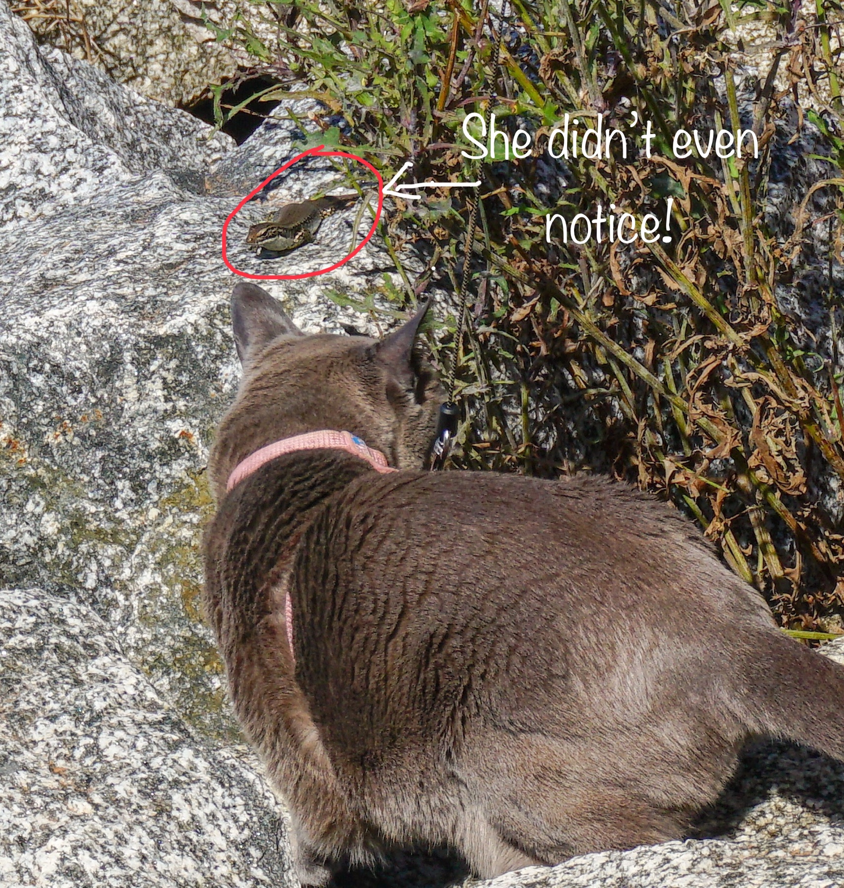 We had ridden carrying our swimming costumes, but on meeting a couple hiking out of the nature reserve who told us they had spotted sharks cruising the coast just off shore, we decided just to get our toes wet on this occasion!