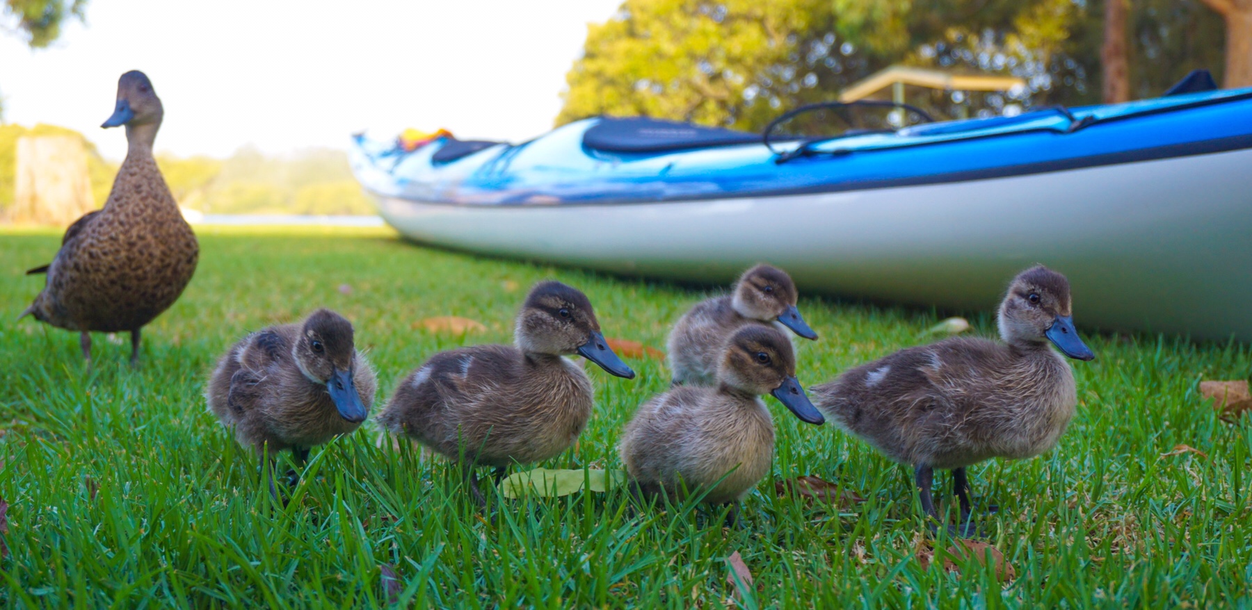 We returned to camp via a few groceries, and made a start on packing up ready to move on, before having showers and getting ready for dinner. Mr A called out in delight as he found a family of ducks and ducklings exploring around our kayak – they were the cutest and definitely deserved a photo!
