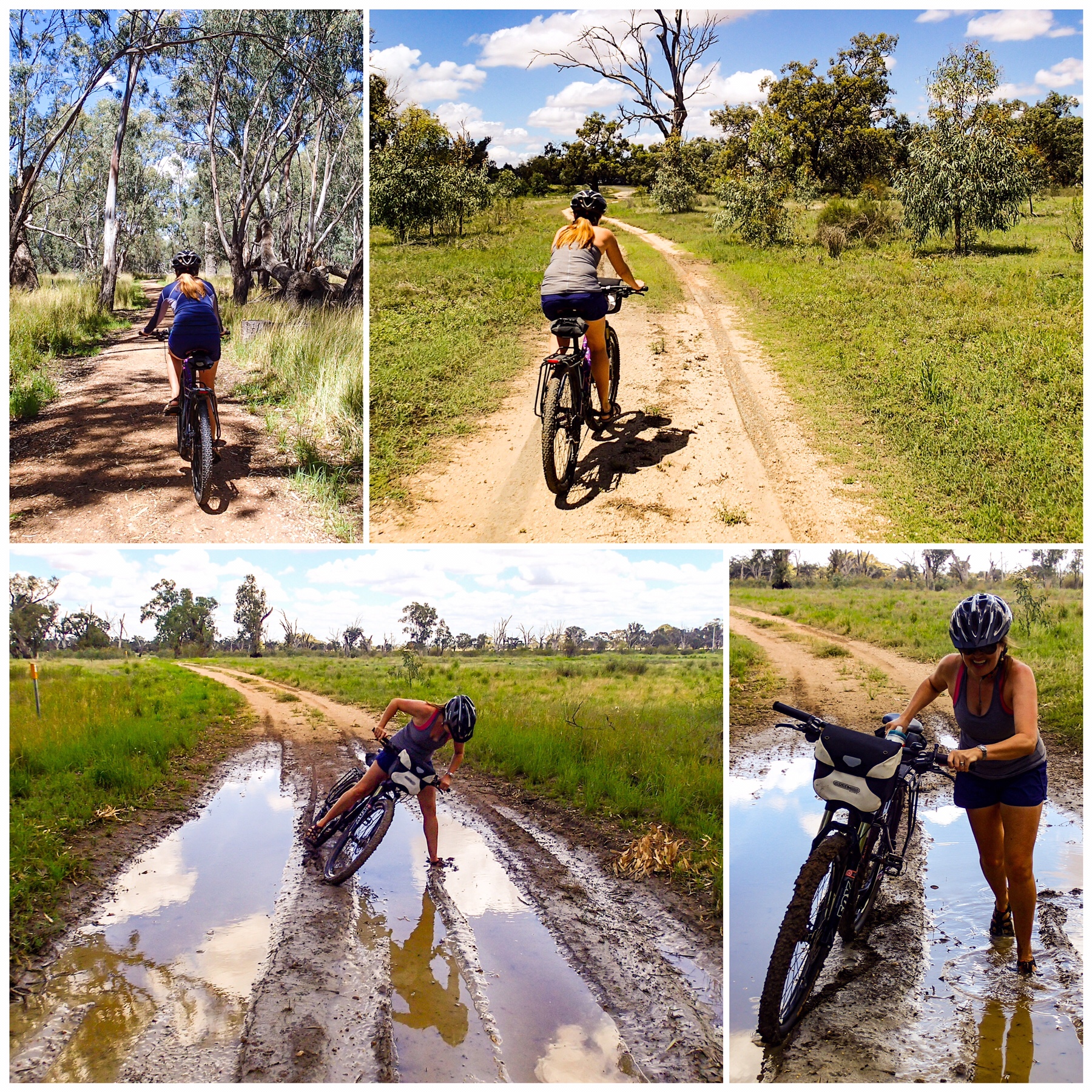 We were immediately immersed in the forest, towering river red gums dominated the landscape. Small flocks of parrots scattered as we rode through this magnificent scenery. We were heading into Yanga National Park to see a historic woolshed, and had a short bit of deserted tarmac to ride down on the way.