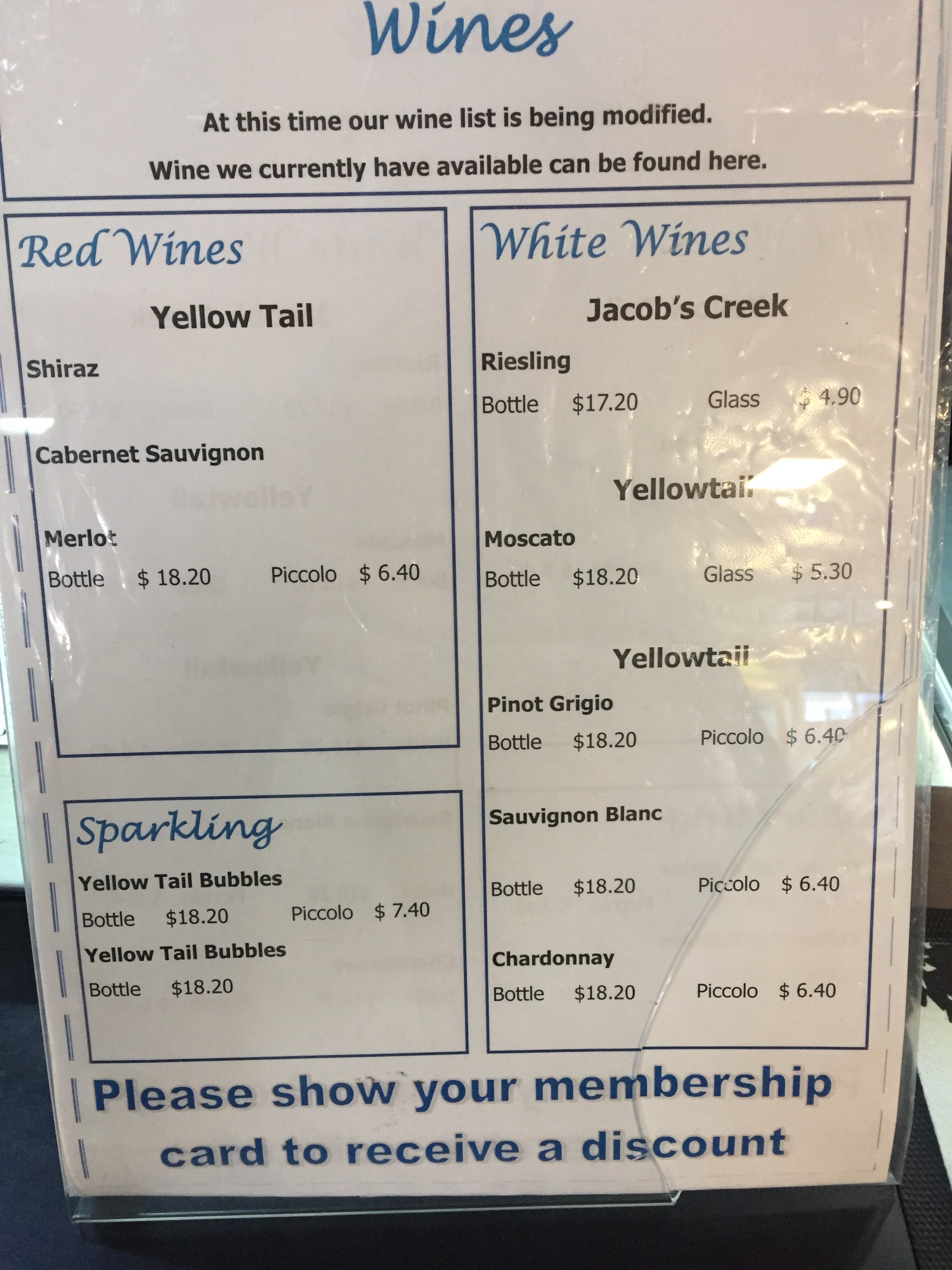 Now…we are in the middle of the Riverina, one of the great wine producing regions of Australia. But apparently “the locals” don’t bother with wine much. Interestingly though, out of the four tables having dinner in the restaurant tonight, three were drinking wine. So don’t they really want a choice of good wine? Or is it that someone can’t be bothered to offer it?