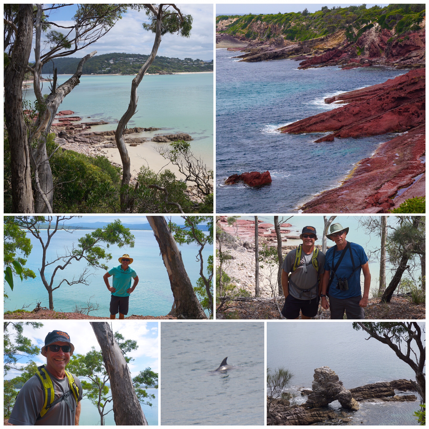 In the afternoon we headed off in cars to start a short walk up the coast though coastal forecast in Ben Boyd National Park. The roos were plentiful, the very lawn like grass indicative of a sizeable mob enjoying this grazing. Dolphins even obliged by appearing on cue, as well as an echidna and bush wallabies. A sea eagle soared overhead, while crested terns dived for fish in the bay.