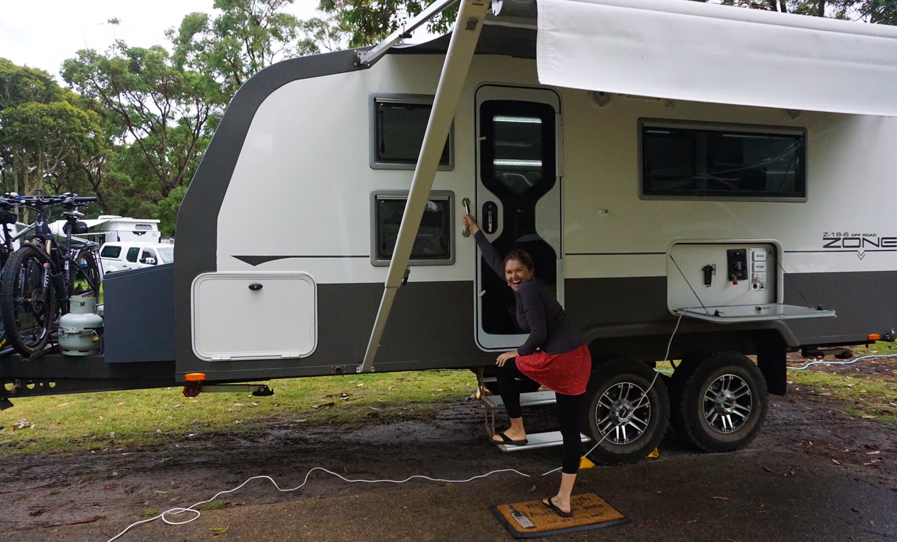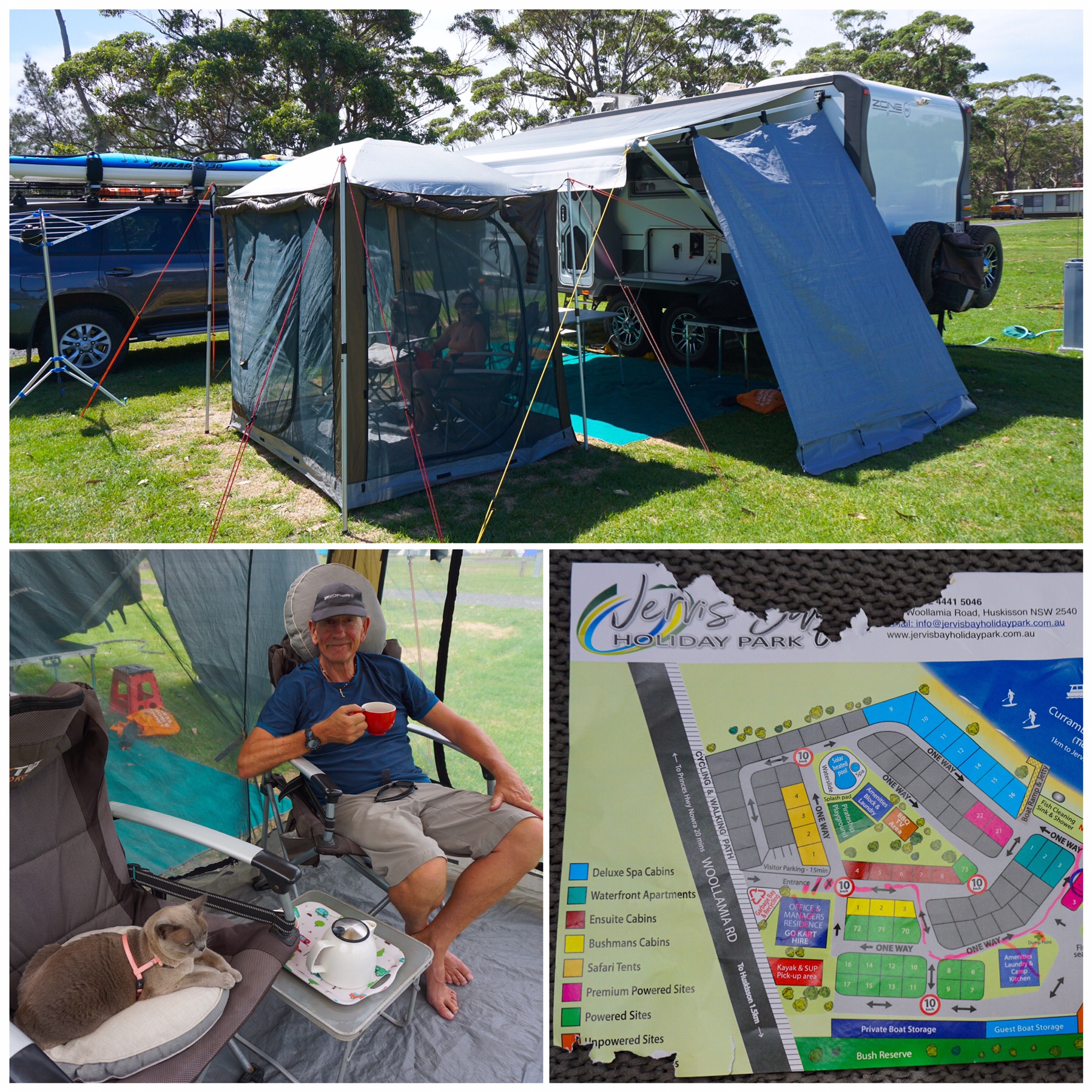 After a few hours on the island our boat came to pick us up and return us to the mainland. There we hitched up the caravan and left Narooma, driving a whole 15 minutes down the coast to our next location, just north of Bermagui at Wallaga Lake.