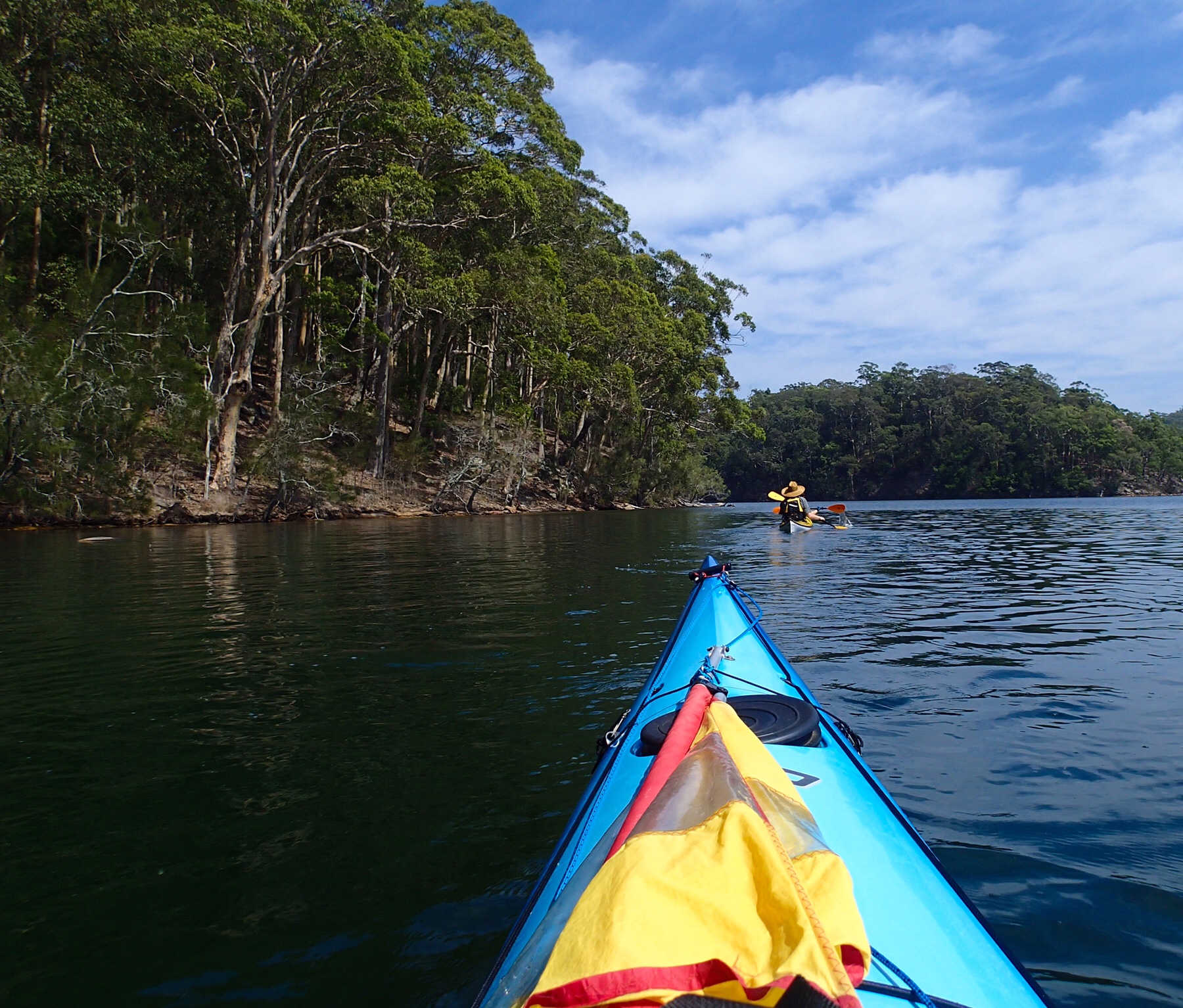 We parked up by a boat ramp and launched into the lake. This waterway is open to the ocean and therefore much clearer than Lake Tabourie, and also tidal. As we set off, the tide was rushing in, giving us a high speed boost on our exploration. There was plenty of birdlife on this lake, with pelicans, cormorants, black swans and also a juvenile White-Bellied Sea-Eagle. Much of the waterway is lined by Meroo National Park, making for some scenic paddling.