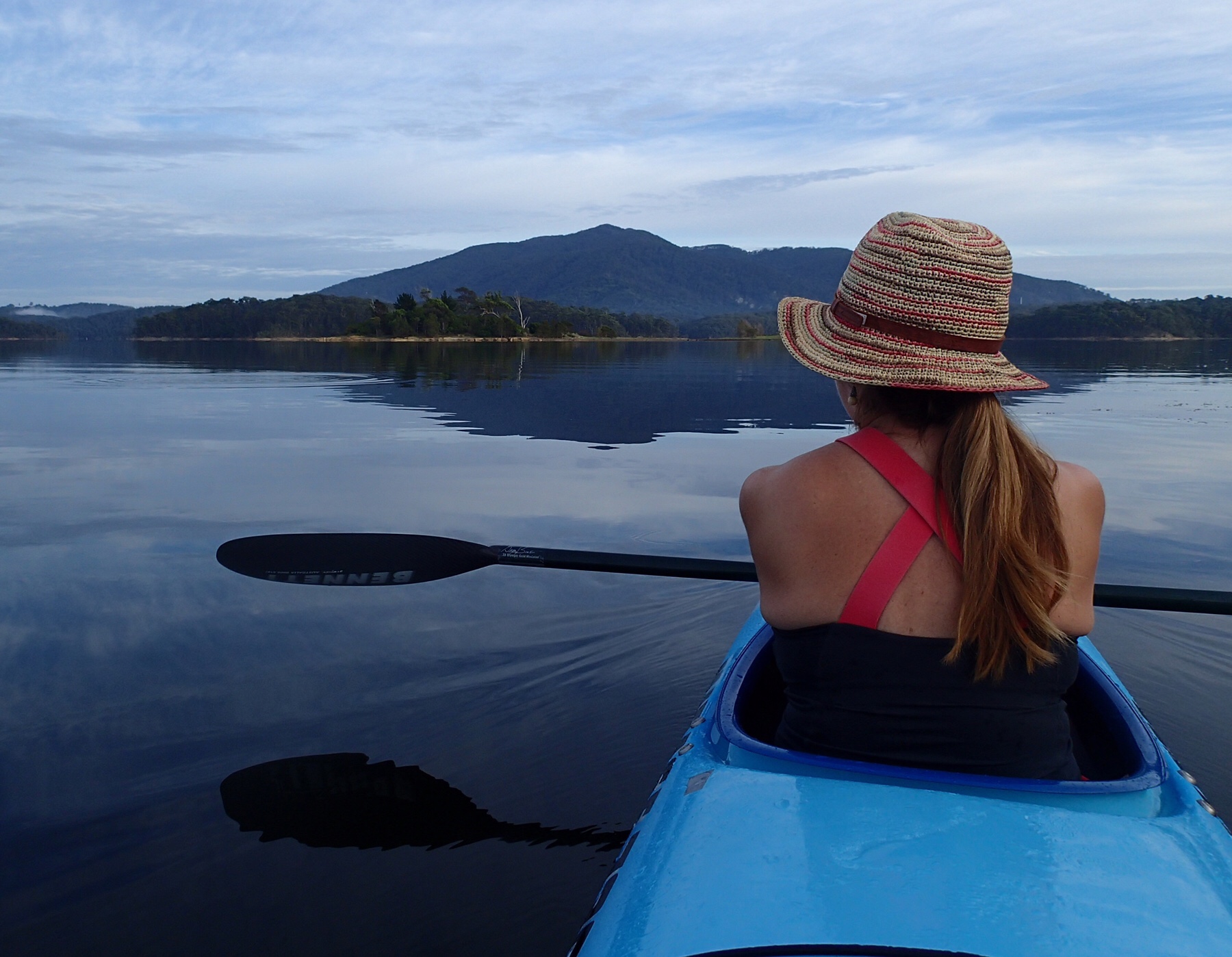 We were reminded that kayaking is by far the most effective way of getting close to nature. Some of our past experiences are right out of a David Attenborough nature documentary including whales, dolphins, kestrels and eagles, and today was no different. As we rounded the corner out of Lemontree Creek I noticed a huge bird in the tree just metres from us. It took a few seconds to realise it was a massive White-bellied Sea-Eagle, finishing its fishy meal. I tried to capture it on the camera – a challenge on the little waterproof one – this is one moment when I wish I had my telephoto lens!