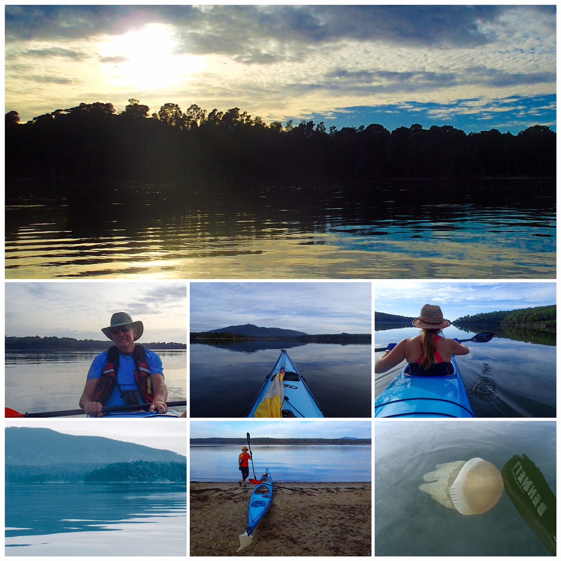 The area’s traditional custodians are the Yuin Aboriginal people, and evidence of their use of the lakes as a food resource is evident in the piles of shells (middens) that we could see around its edge. Cormorants dived around us, black swans took flight even with our stealth like approach. Catherine spotted a bush wallaby looking apparently surprised to see this a 7 plus metre long boat disturbing his morning constitutional. The lake is so shallow kayaks are the only craft that animals would see on most of the water. Jellyfish were moving along in swarms, quite beautiful the way they just ripple along.