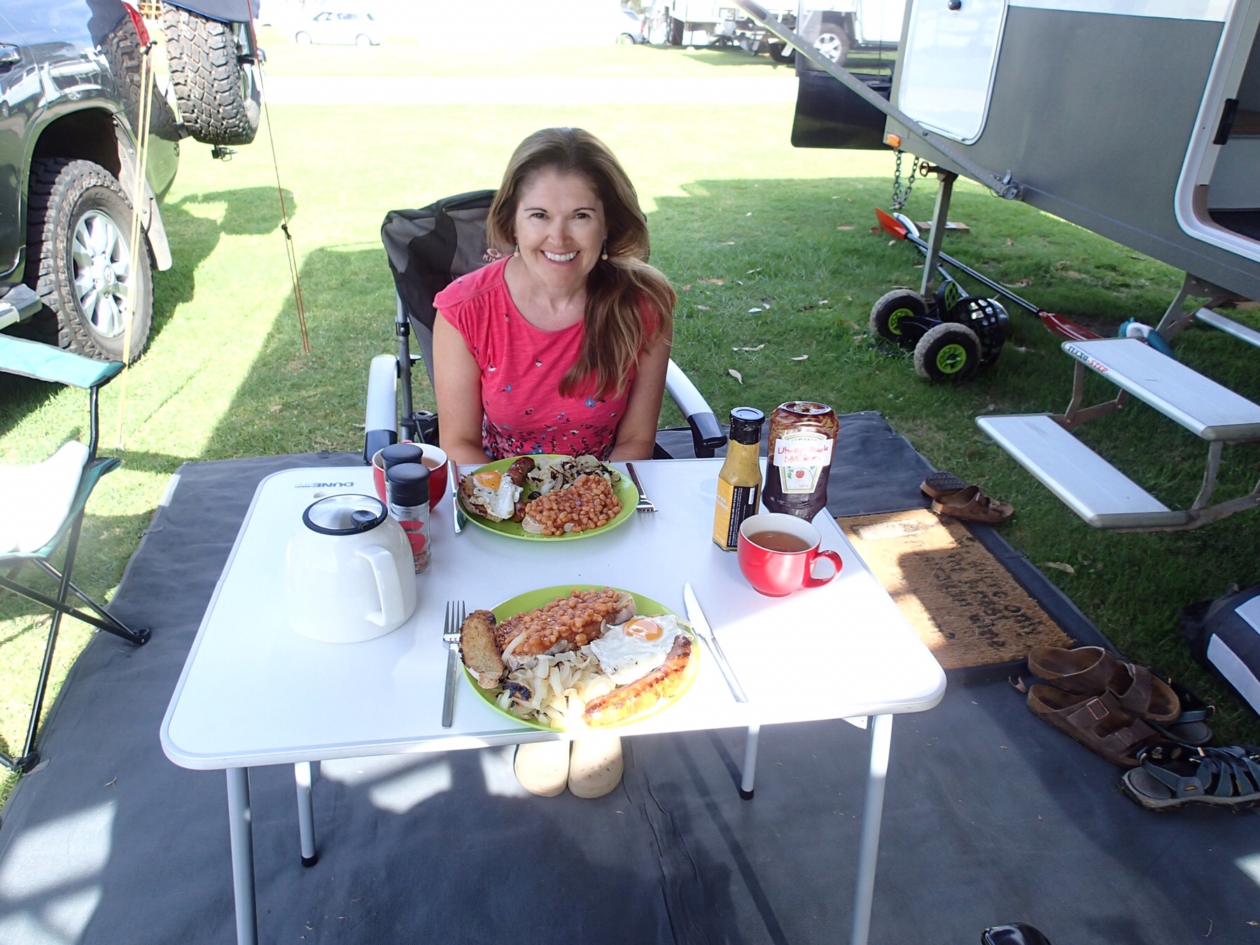 Nine kilometres later and we were back at our caravan, and me racing to turn on the BBQ. Delicious sausages brought from Orange, fresh eggs and of course baked beans resting on home made toasted sourdough. A brunch fit for paddlers!