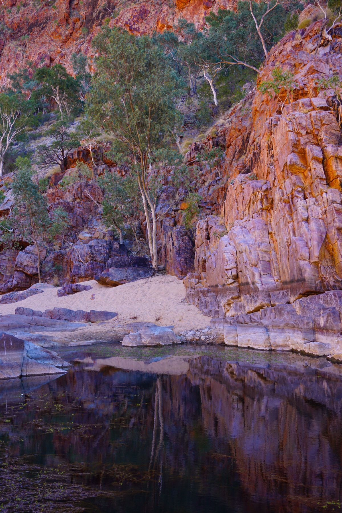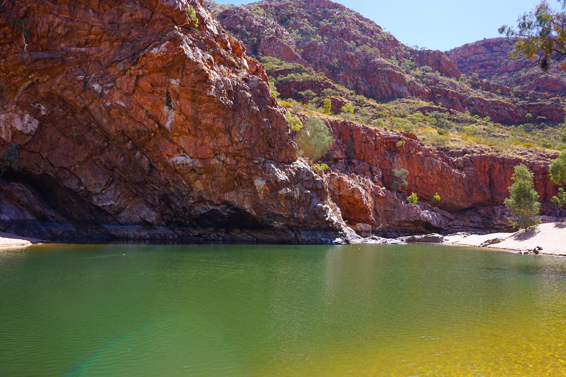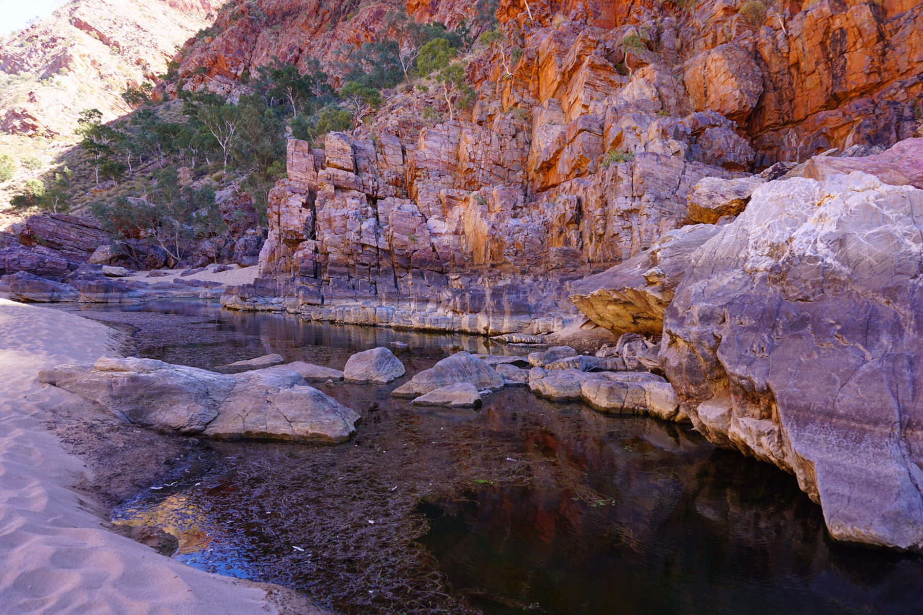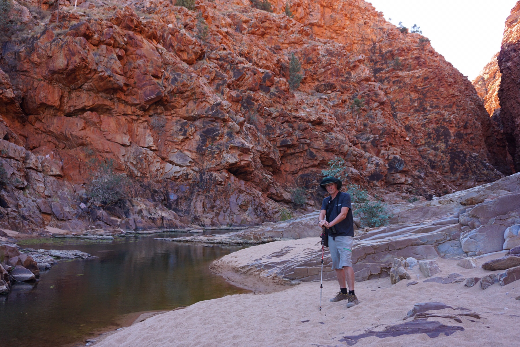 The Gorge is one of several in the West MacDonnell ranges, which spectacularly rise up out of the desert plain and stretch several hundred kilometres. We rocked up at was to be one of our prettiest campsites on this section of the trip, with views down into the gorge. We quickly unhitched and drove down the steep access road, parked up and hit the short trail into the gorge proper.