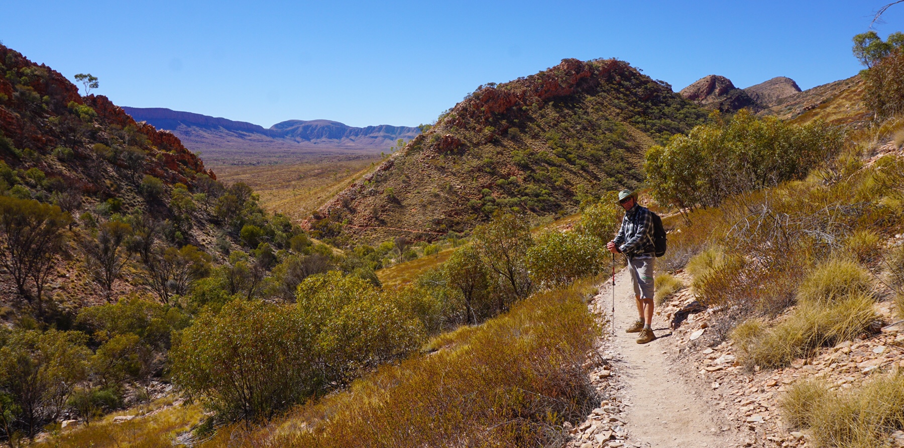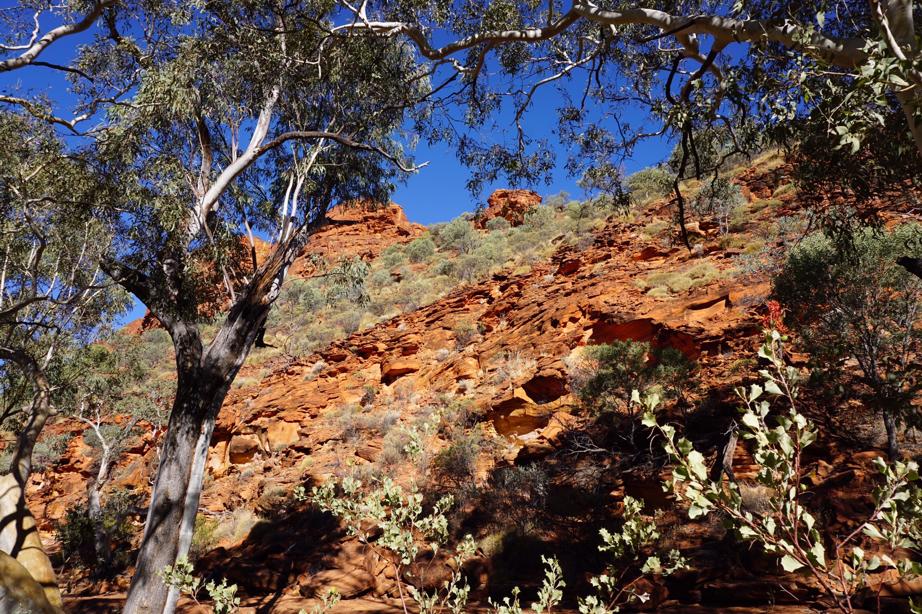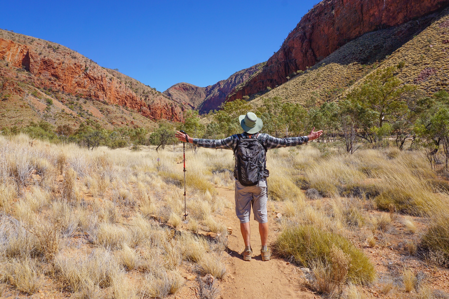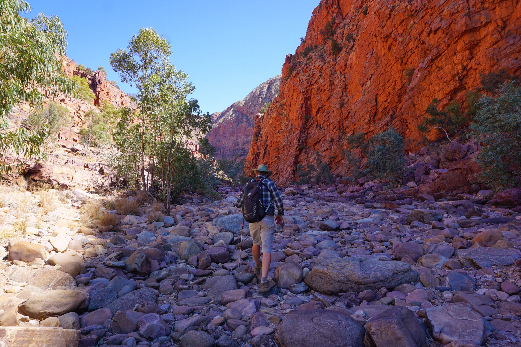 The Gorge is one of several in the West MacDonnell ranges, which spectacularly rise up out of the desert plain and stretch several hundred kilometres. We rocked up at was to be one of our prettiest campsites on this section of the trip, with views down into the gorge. We quickly unhitched and drove down the steep access road, parked up and hit the short trail into the gorge proper.