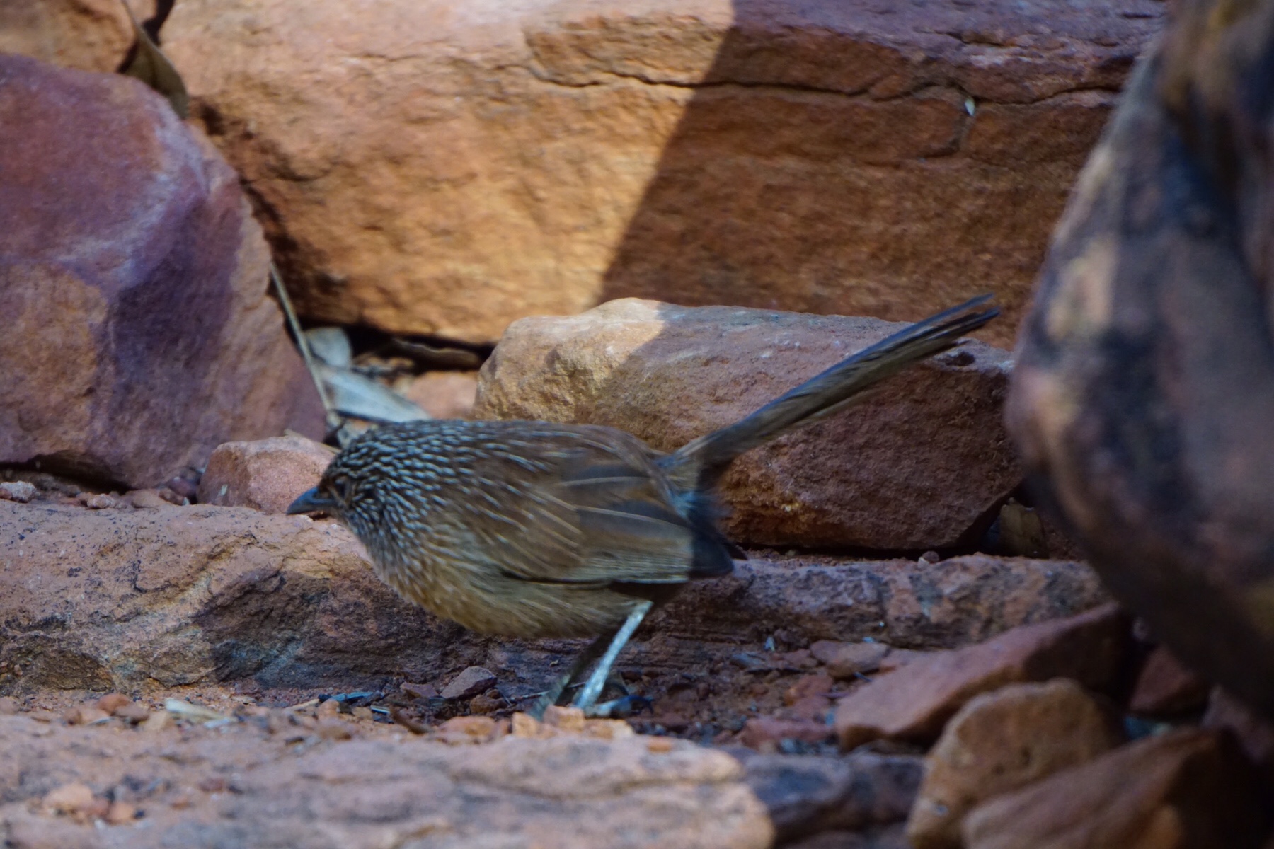 We opted for a short and peaceful walk along the dry King’s Creek, an informative track with several birds accompanying us, particularly this ever-so-cute Dusky Grasswren a perky little desert dweller that didn’t seem to mind hopping around the rocks near us.
