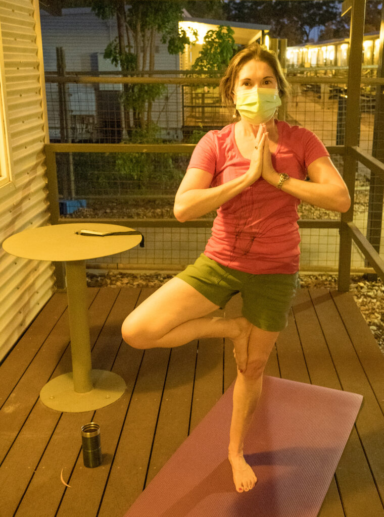 You’re allowed to order goods from BigW and KMart, which will be collected by workers from Howard Springs and delivered to your room – we ordered two yoga mats ($10 each), giving us a clean space to exercise on outside. There are regularly bush fires around the area, and the deck is always covered in a thin layer of brown ash. You’ll notice that in no time when you look at the soles of your bare feet – you’ll be pleased to have an easily cleaned rubber mat as a safe haven to stand on!