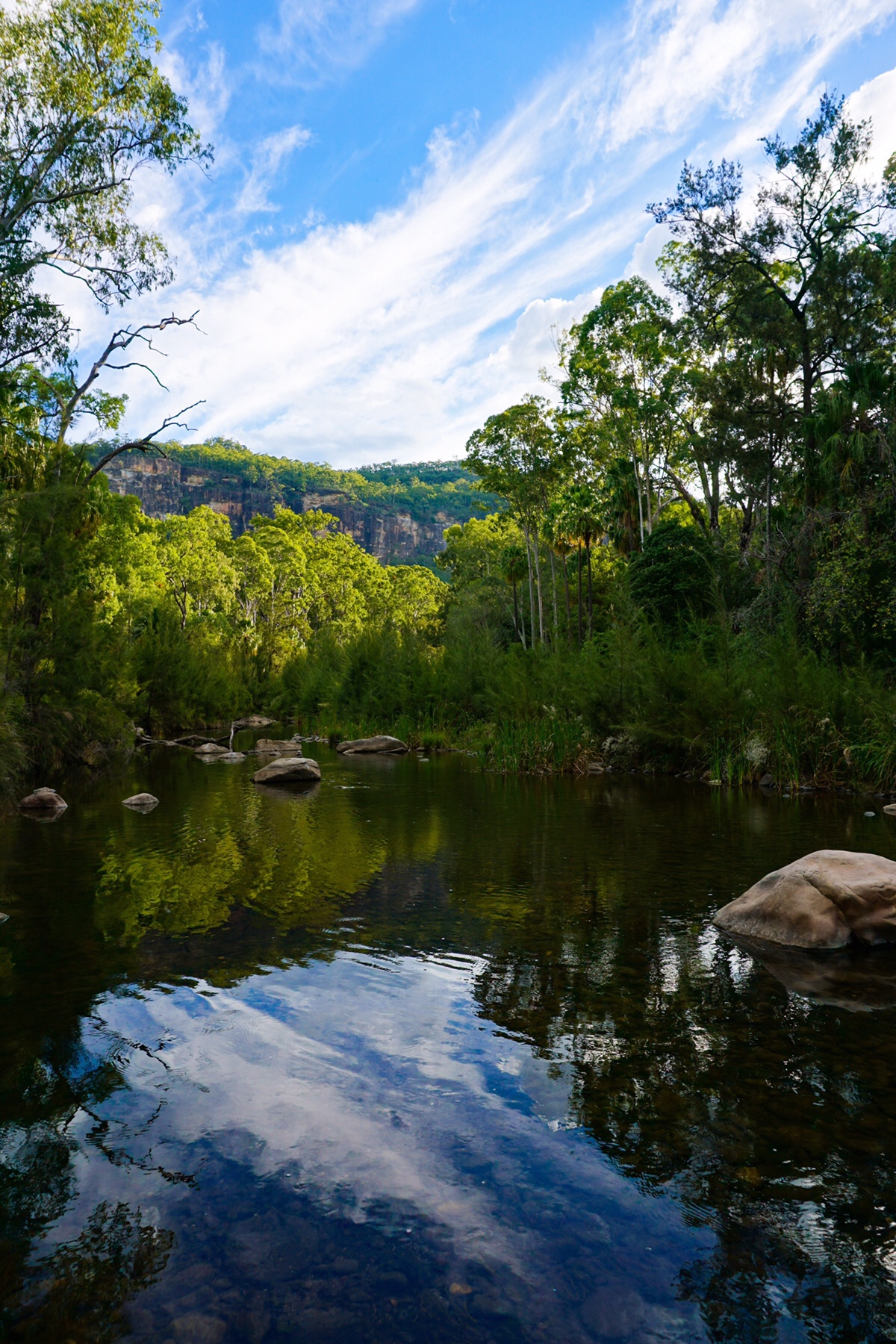 We hopped over the first water crossings, the views down the watercourse with the sandstone walls towering imposingly in the background were amazing. This is a special place, and we’re so glad it is being looked after well.