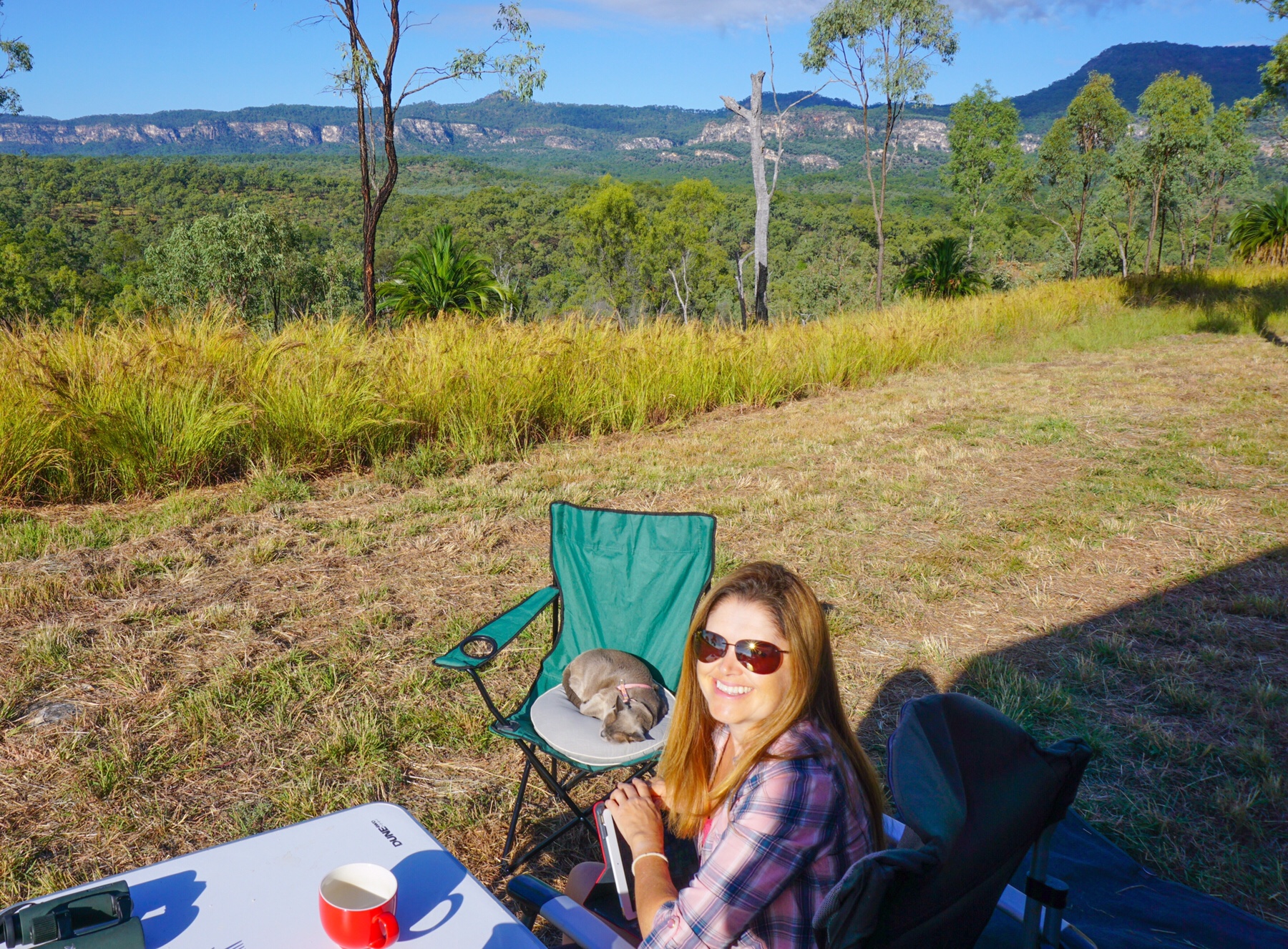 We selected a spot with no nearby neighbours and plenty of views, and got settled in. Miss Tassie had a good look around and gave it her tick of approval before retiring to bed.
