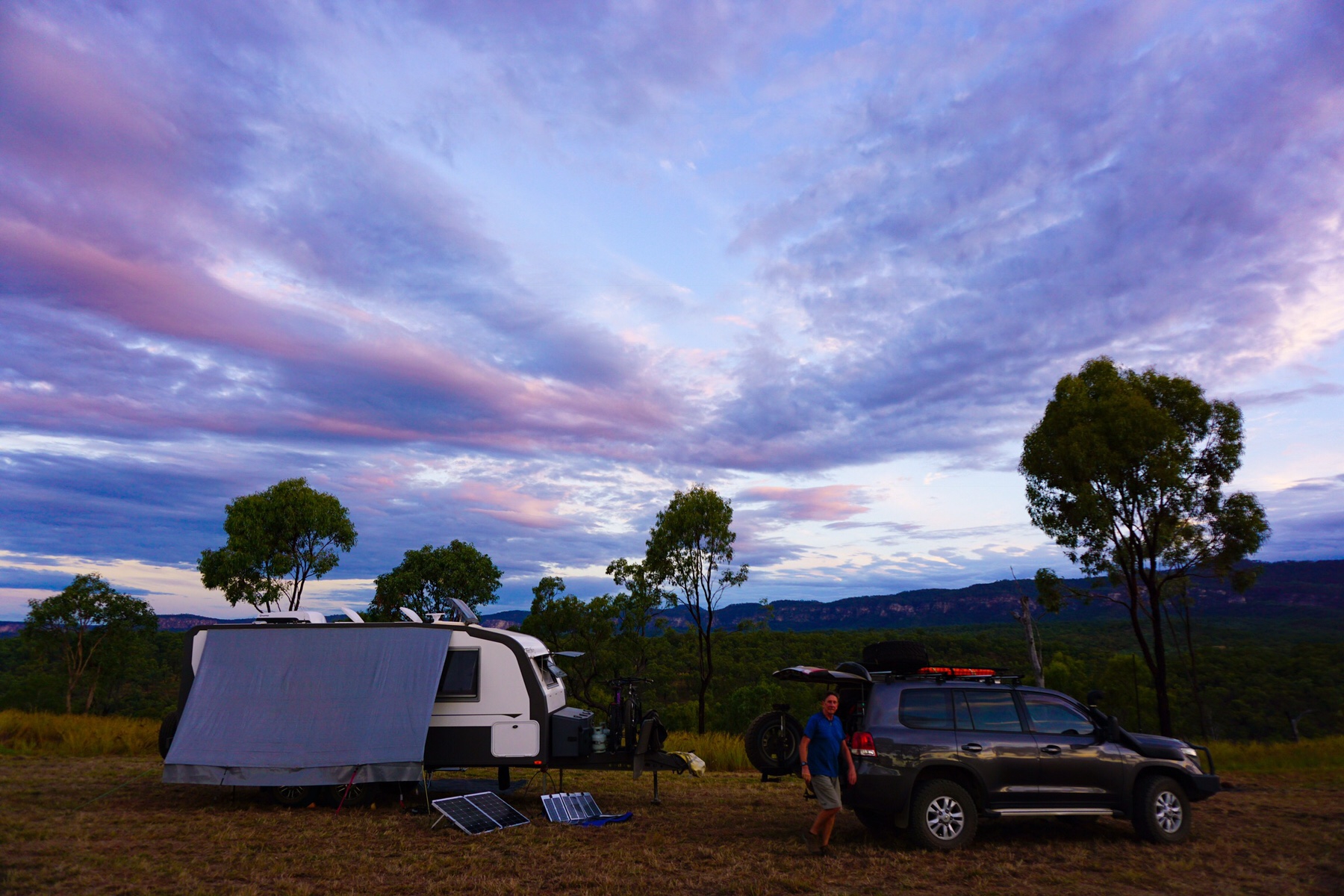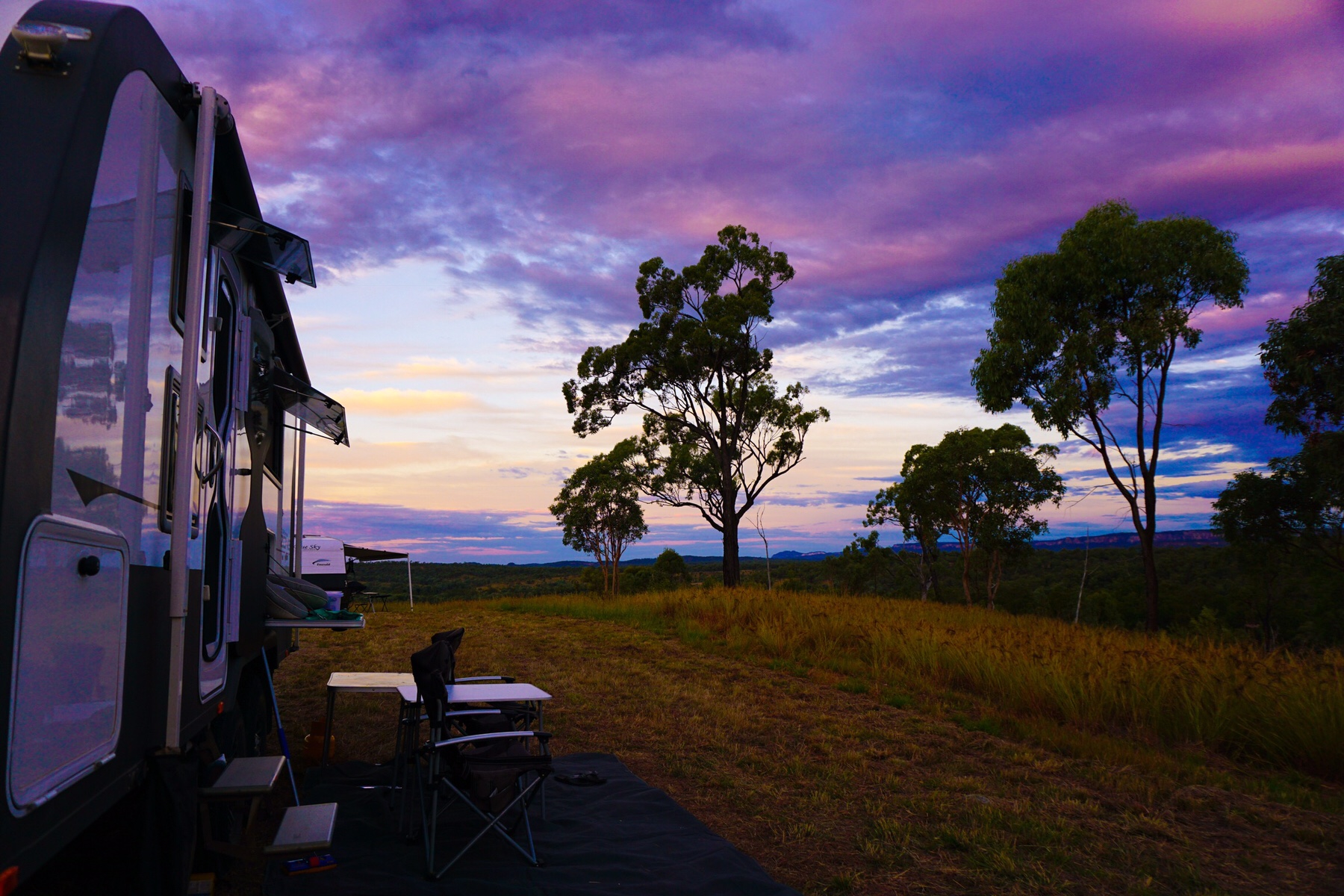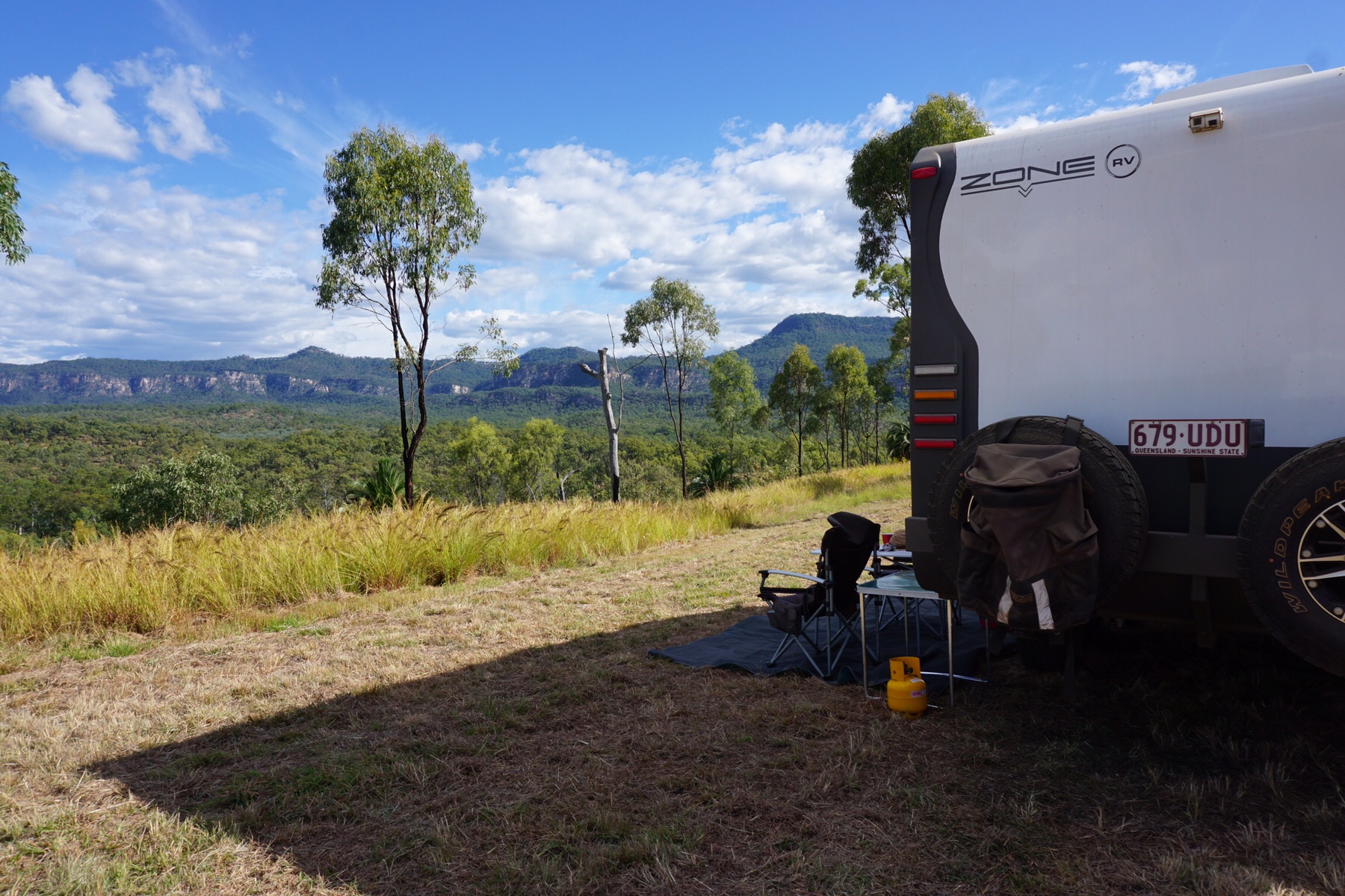We were staying at Sandstone Park, a 50 acre cattle station and bush camping area, with sites set up high on a hill with 360 degree views across the gorge’s white sandstone walls. With no power or water on offer, we had filled up our tanks to the brim and hoped for clear skies to help charge up our solar power.