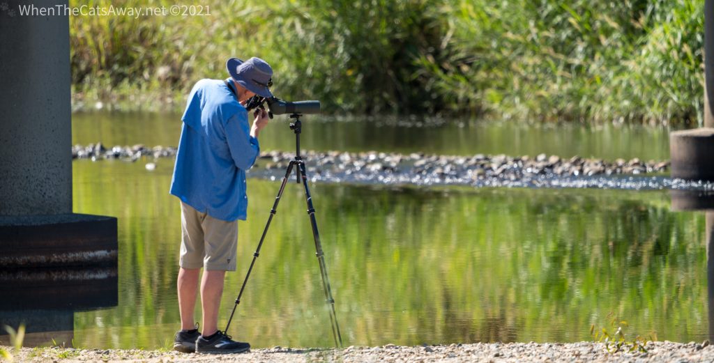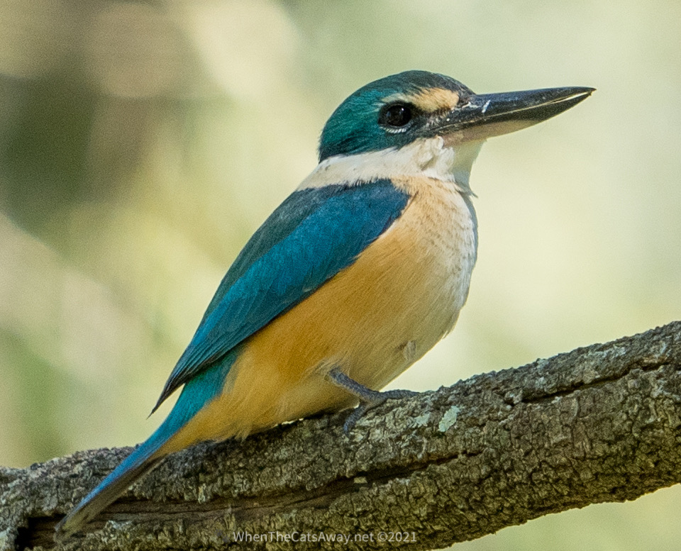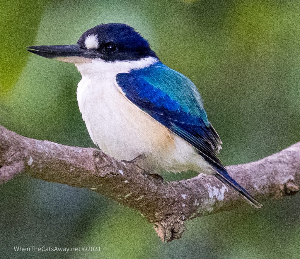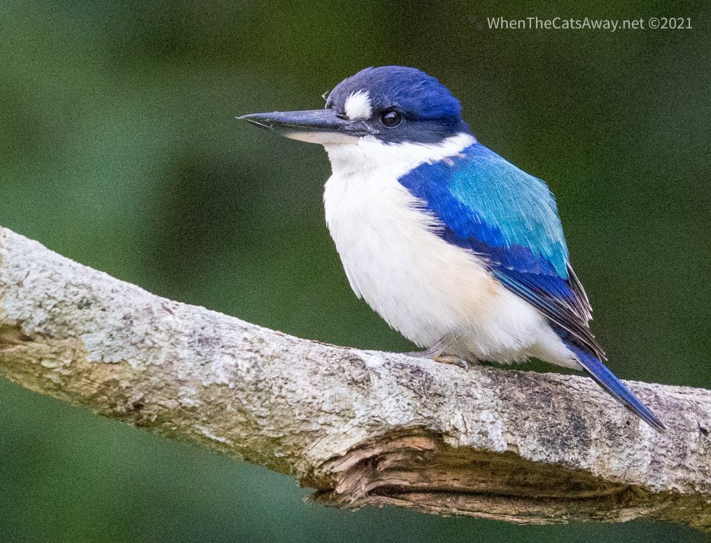 An Azure Kingfisher – a true water-hunter. These have tiny tails to help streamline them when they dive for fish and prawns in the river.Azure KingfisherAzure KingfisherA Sacred Kingfisher – they will hunt insects, frogs, crabs and lizards as well as fish.Sacred KingfisherA rather lean looking Forest Kingfisher – they have a diverse appetite and are often seen perched on powerlines watching for their next snack.Early morning photography in actionI even worked out how to use the spotting scope on the boat