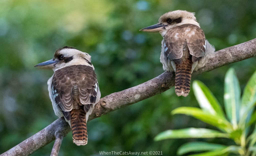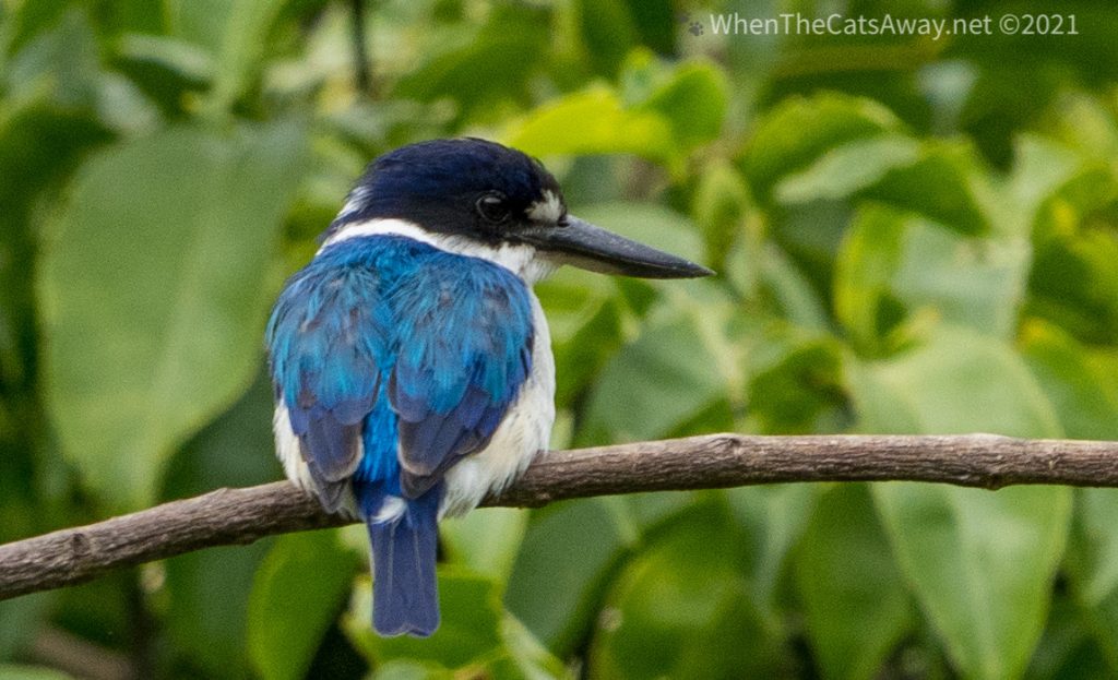 We had a look around the grounds in the morning. We could hear a lot of bird life, much of it very high up in the canopy of the trees and inaccessible. But rounding a corner beside the dam we saw a couple of Forest Kingfishers. They were clearly used to seeing people and comfortably sat in a tree beside the water, occasionally flying down to catch a lizard or frog from the long grass below. Forest Kingfishers are more similar in their diet to Kookaburras, not necessarily relying on fish and other aquatic creatures for meals.