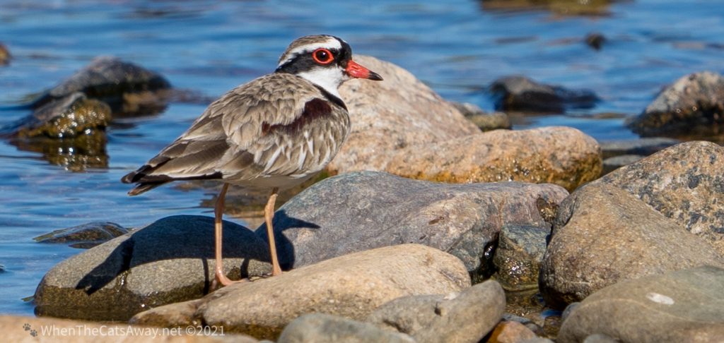 Mr A lining up to spy on a Great Egret across the creekGreat EgretBeautifully disguised among the pebbles on the creek’s edge, Black-fronted Dotterels dash along hunting for foodTiny and well disguised Black-fronted Dotterel A Sacred Kingfisher perched up in a tree with a good view of the waters belowAnother viewpoint across the Pioneer Valley from Teemburra Dam, not far from Finch Hatton