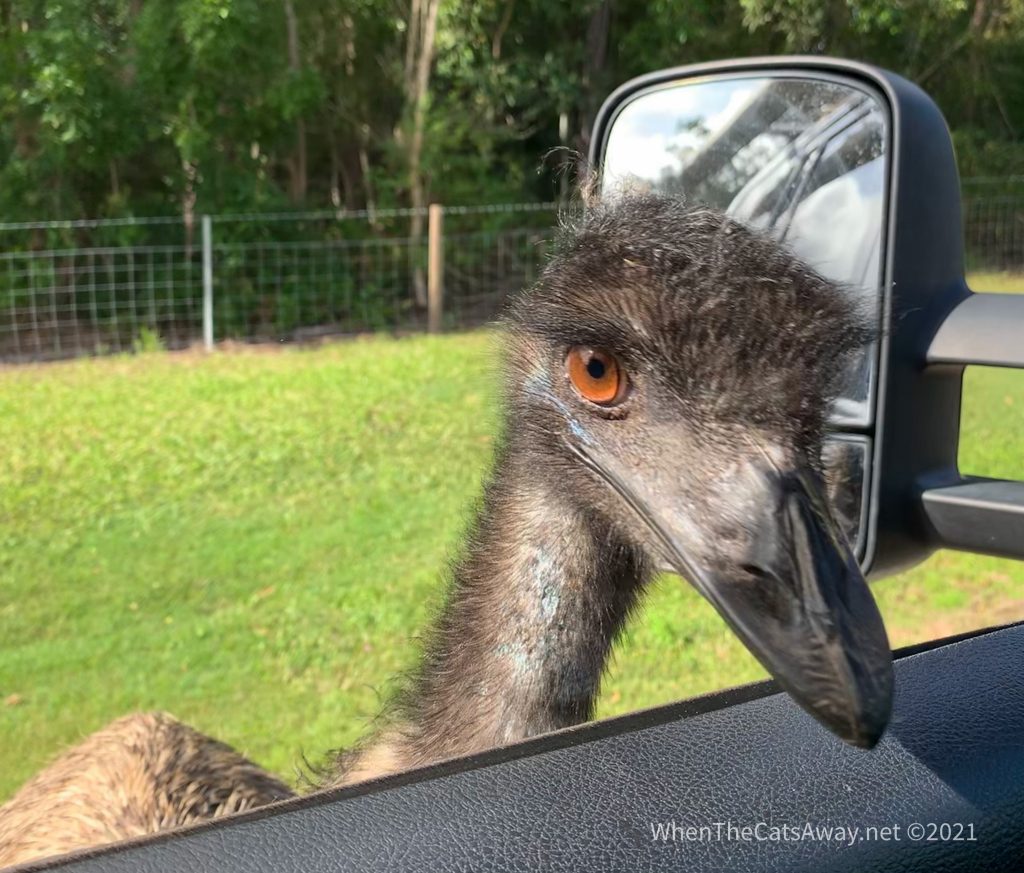 Later in the day we took a drive over to Waterpark Creek in the National Park for a look around. On our way there I spotted an Emu strolling alongside the road, so we pulled over for a look…and he thought exactly the same thing as he strolled right on over to inspect us. Lucky Tassie wasn’t in the car – she already is afraid of birds – this large visitor might have put her off travelling for good!