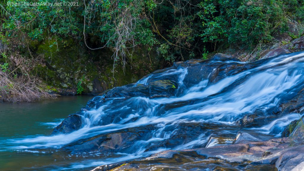 Not far from the end of our walk we took ten minutes to sit down by Crystal Cascades (how many falls have this name, I wonder! A lot!) and just enjoy the ambience. Listening to the constant sound of the water running over the rocks as they have done for hundreds of years, to breathe in the clear, clean oxygen from the forest.