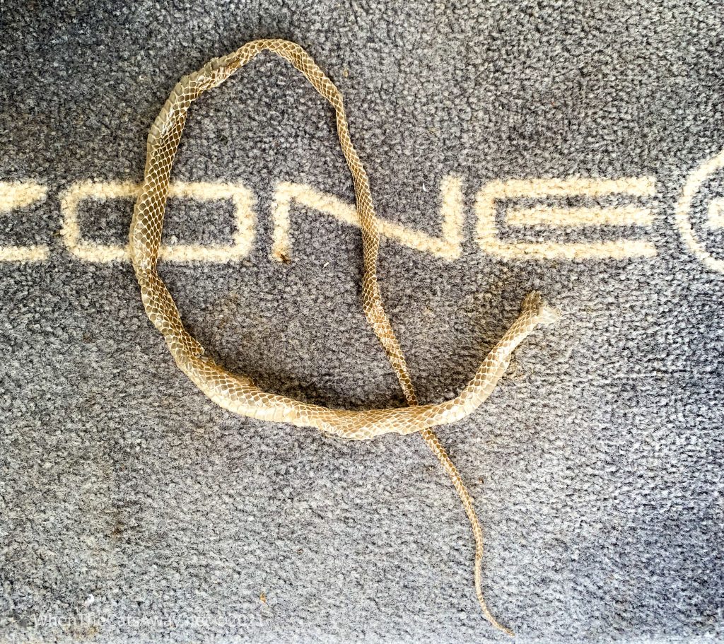 Meanwhile, back at camp, Princess Tassie just loved her new home, particularly after the four dogs and their families had left! She went for quite a few accompanied walks, loving the greenery, new sights and smells as much as us. Fortunately the closest we got to any slithering reptiles was this snakeskin on a woodpile Tassie was exploring. We encouraged her to explore new areas after that!