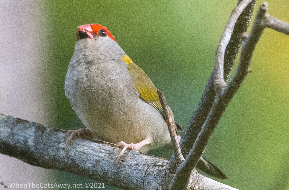 The serenity of Waterpark CreekMirror-like stillness on the creekCamera at the ready…Kookaburras sitting in the treeA Red-browed Firetail sits watching us suspiciously from a branch, keeping watch for the rest of its flock which is munching on seeds in the long grass belowA Grey Fan-tail followed us on our walk, catching insects as we disturbed themGrey Fantail