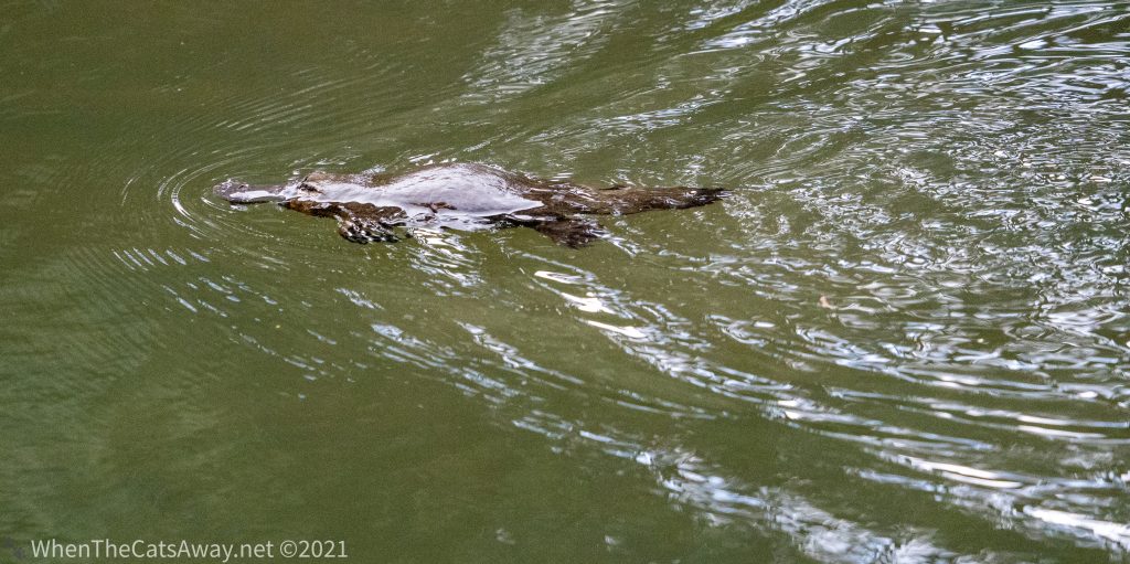 Just before heading back to the car we diverted briefly to see whether we could catch our last glance of a platypus. Lucky us, we were rewarded with two.