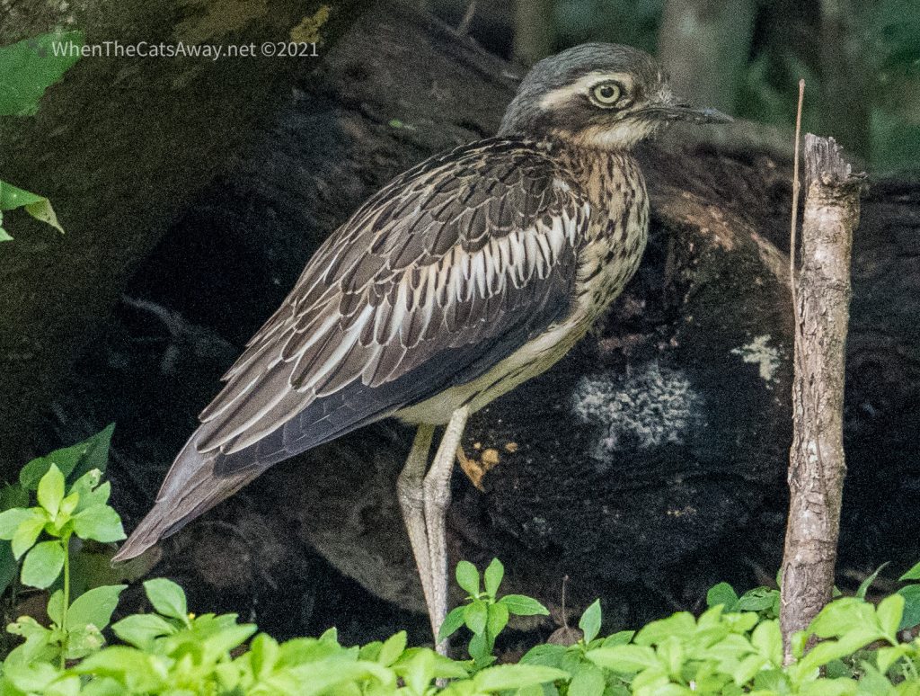 Well disguised and about 50 metres away from us, this Bush Stone-curlew (also known as a Bush Thick-knee) barely rustled a feather for 5 minutes before picking its way back into the dense forest