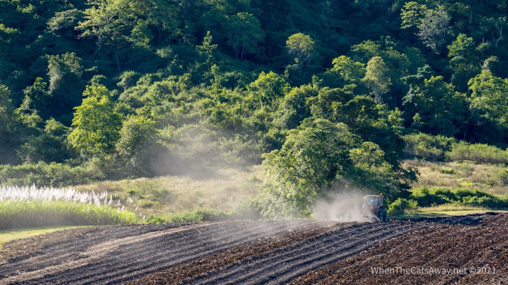 Where cane has already been harvested. the farmers were out busy ploughing the fields ready for planting the next crop. You can see the richness of the soil here, stark contrast to Australia’s land further west.