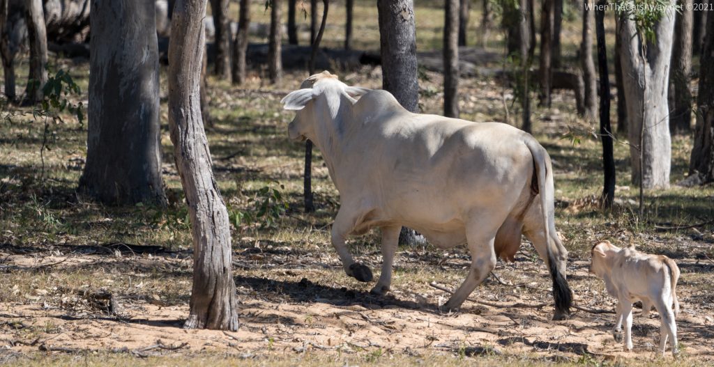 A Striated Pardalote with a beak full of spider on our campgroundA Brahminy Kite flying along the Fitzroy RiverFlight of the Australian Ibis – our international readers might see these as exotic, but in Aussie cities they have been dubbed the ‘Bin Chicken’ as the seagulls of our rubbish binsWe didn’t go swimming in the Fitzroy River!