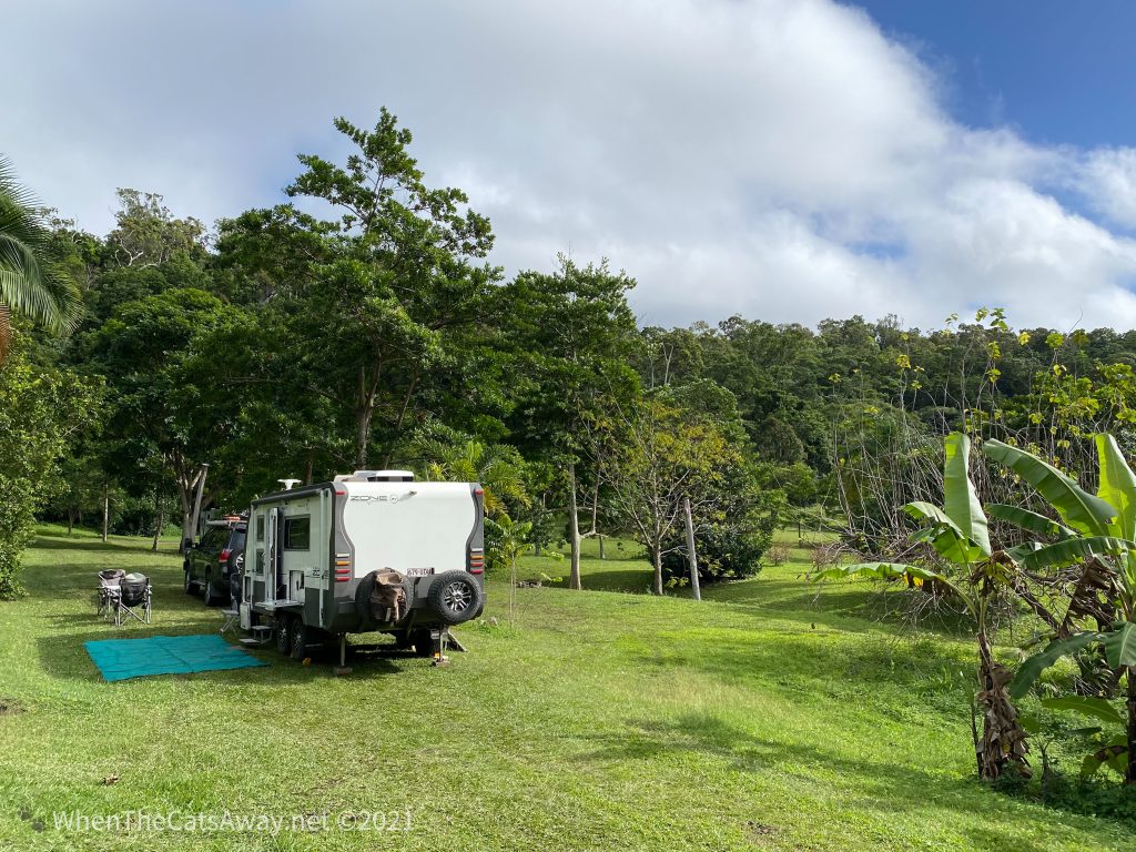 We moved on up the coast less than an hour to a quiet campsite just south of Mission Beach near the heads of the Tully and Hull Rivers and on the edge of the Hull River National Park . We checked in for three nights, looking forward to a few peaceful evenings finally away from the Bruce Highway.