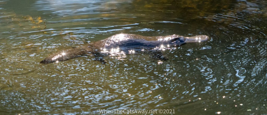 Platypus are an endangered species, already extinct from South Australia (though they have now been introduced to Kangaroo Island), and with reducing numbers elsewhere. This is one of the best places to see them in the wild and we relished the opportunity.