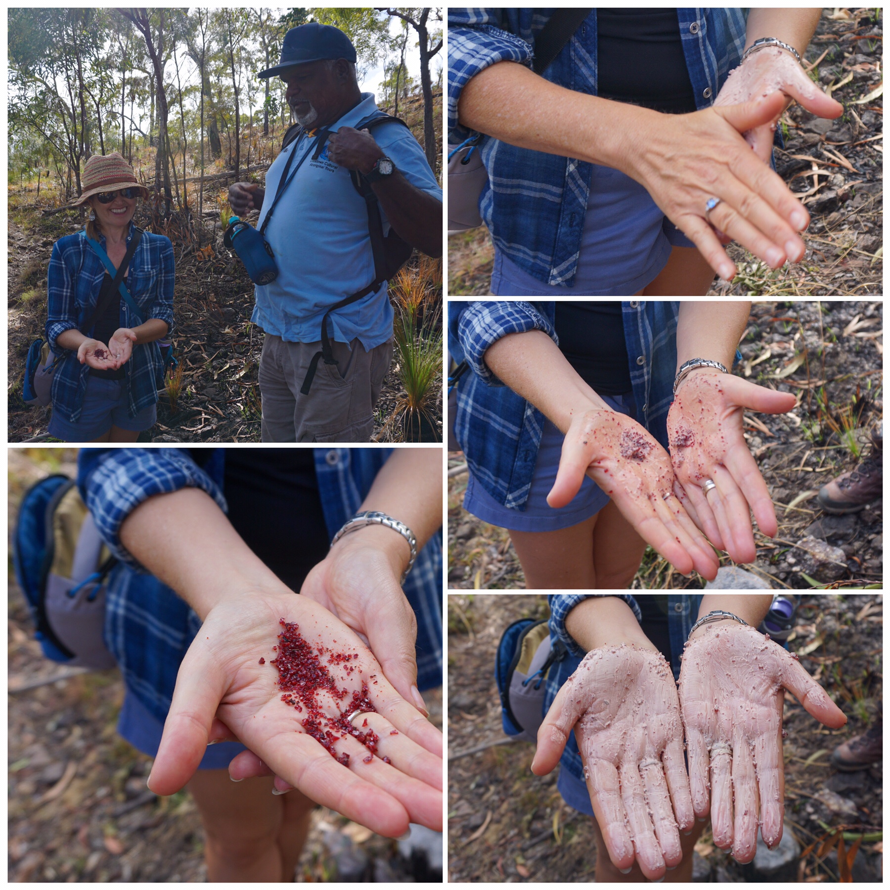 The knowledge of flora and fauna these people have accumulated over 40,000 years and passed on through stories, music and art is just incredible. He had Catherine mix up some seeds in her hand that are used to put a protective coating over a wound, while he had another lady rubbing together some leaves from the soap bush creating a cleaning compound that was antiseptic.