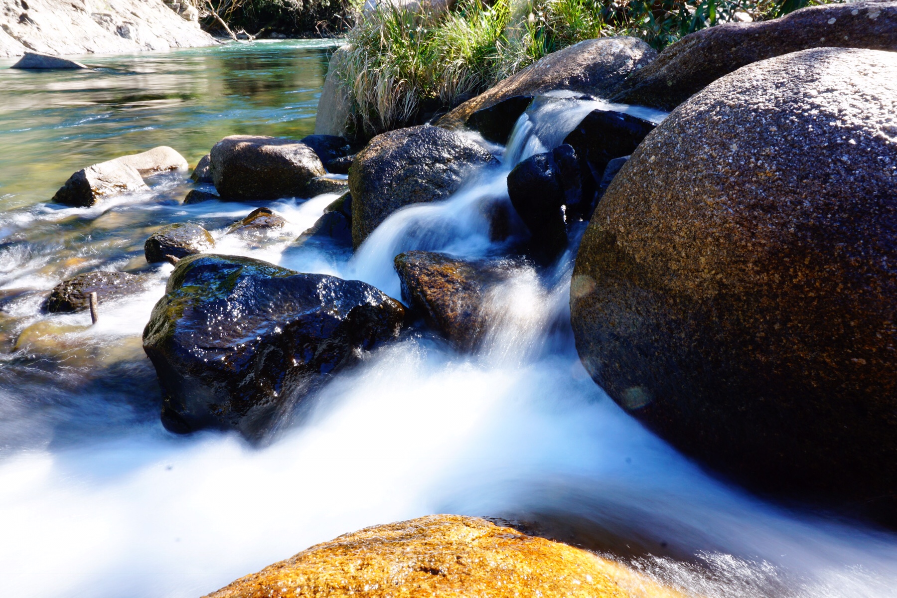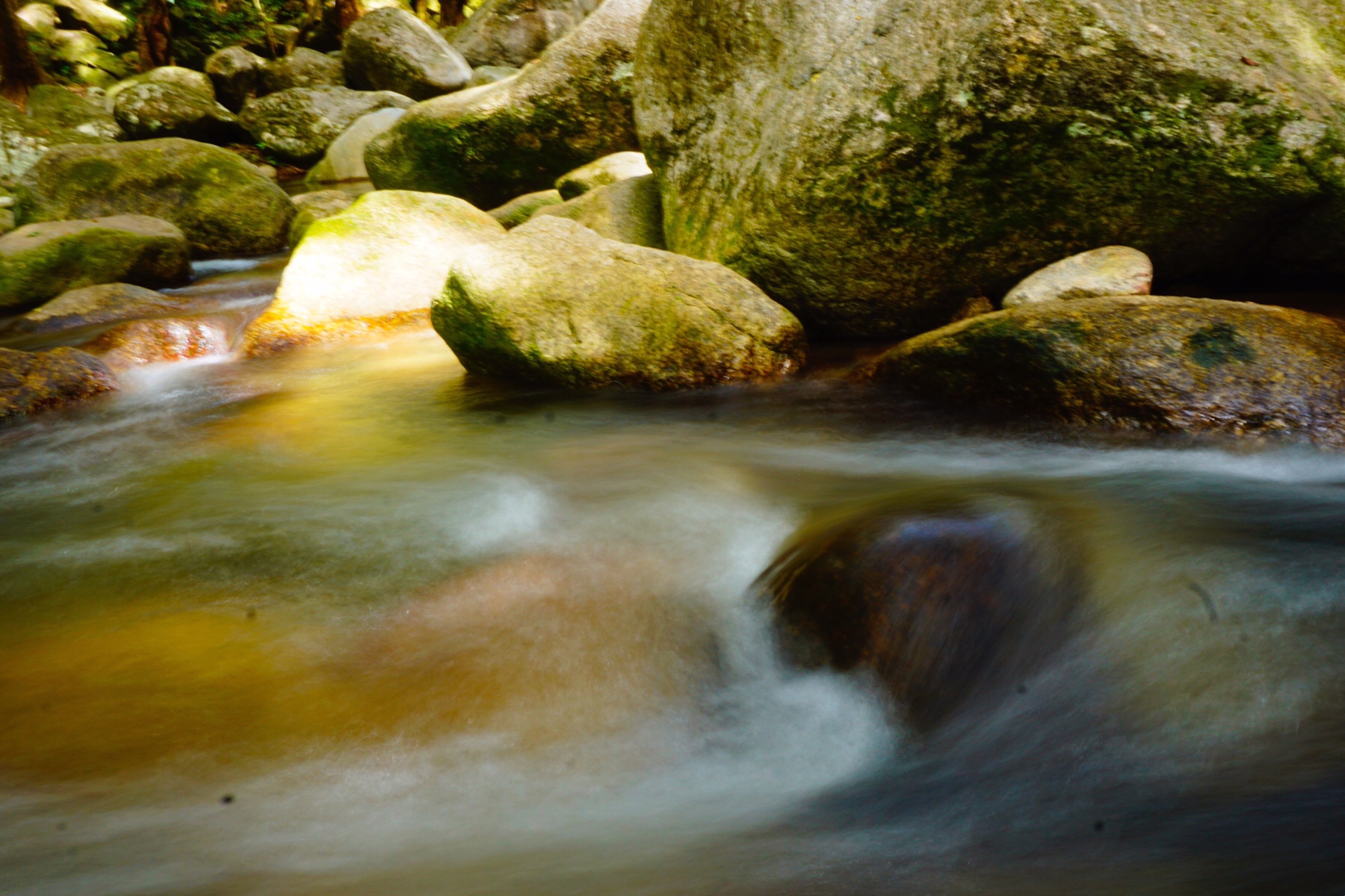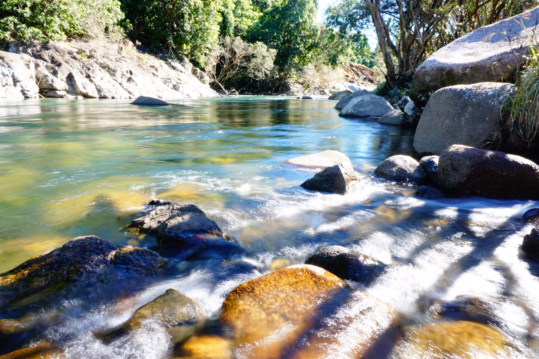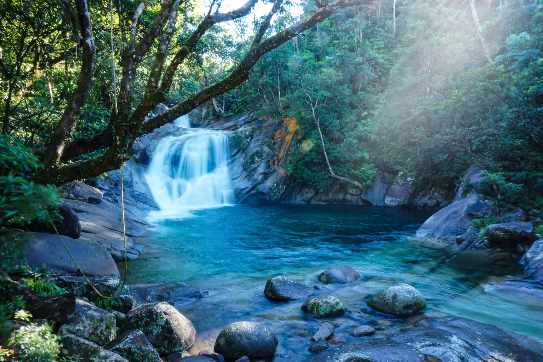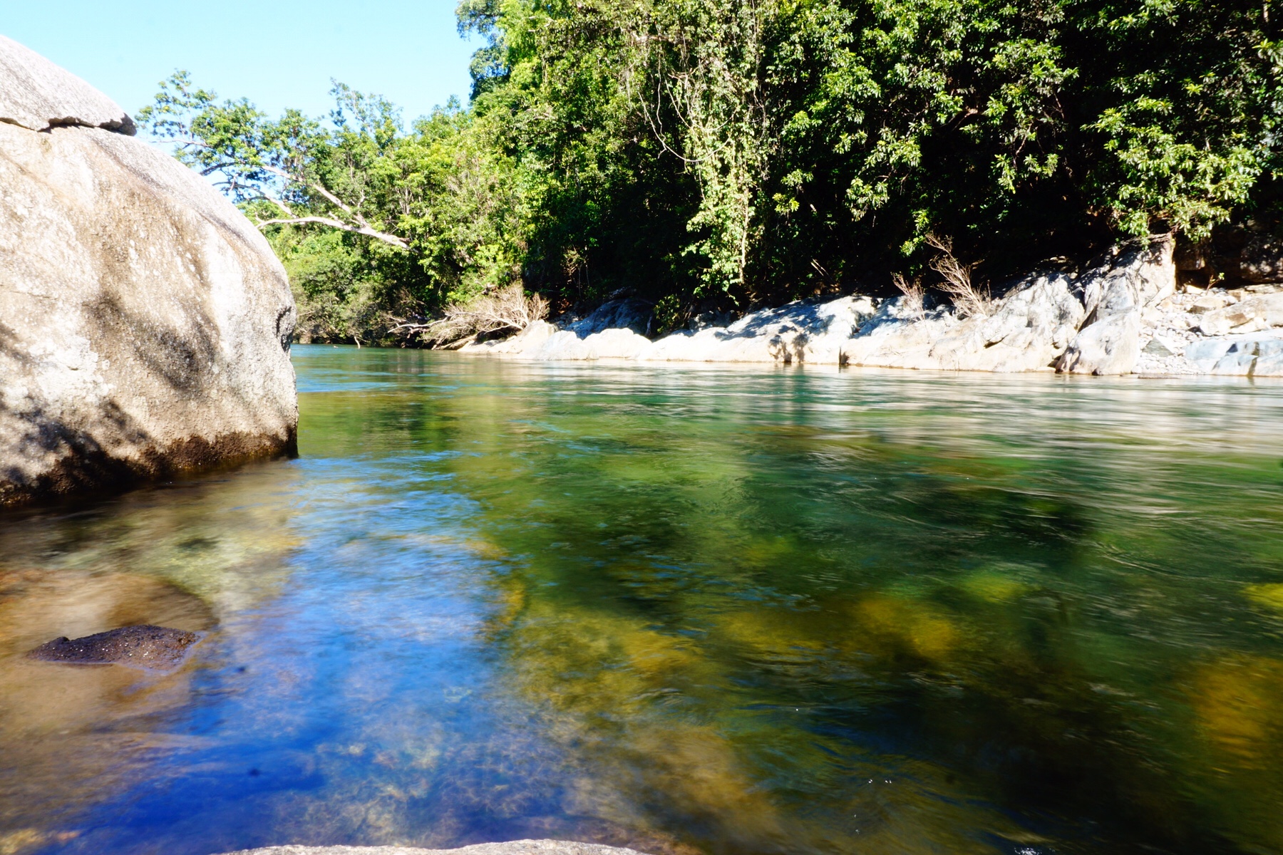 Once away from the swimming areas it is relatively peaceful, moss covered rocks with a crystal clear creek tumbling down all around, surrounded by old growth rainforest of the Daintree National park.