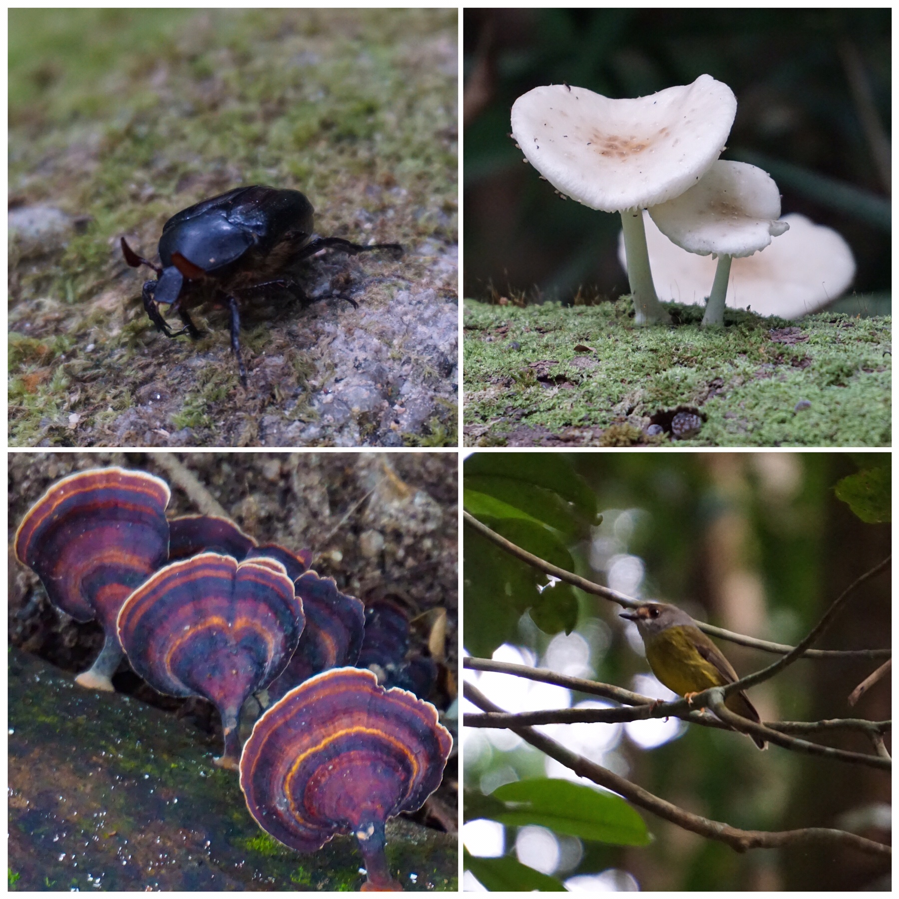 Birds flitted around, perching sideways on the vines that hang down from the canopy above and swooping across our path to catch the insects we disturbed as we strolled along. Being rainforest there was a lot of rotting wood, and with that an amazing array of colourful fungi – I drove Mark crazy with my gasps when I saw the next amazing colour scheme I had to capture.