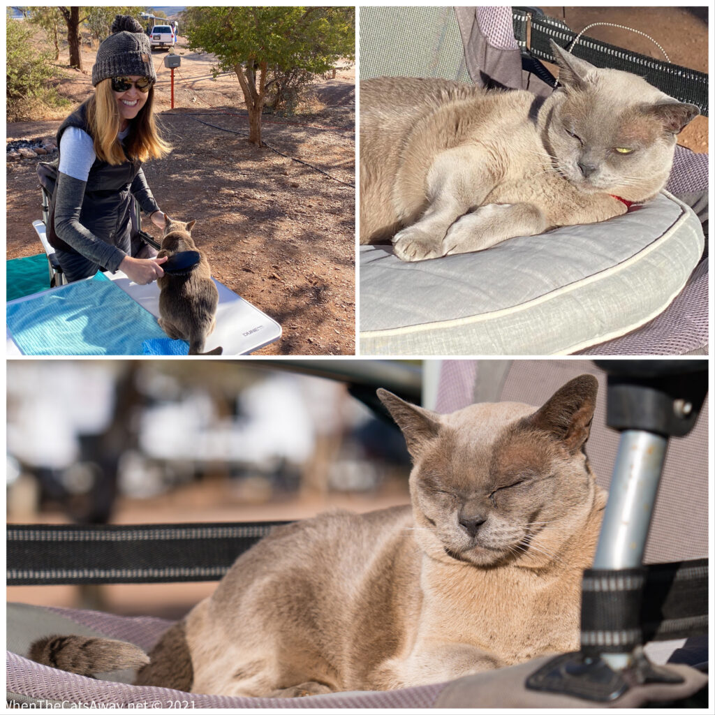 The no pets policy was kindly waived by the lovely folk who run the Birdsville Caravan Park given our situation. We got in at 7.30pm. Our tow truck driver didn’t get in until 10.30 pm, we found out the next day. These guys work so hard. Anyway we crashed out, our little Tassie super excited to be in a new environment, racing (a relative term in her case nowadays) round the room with big wide eyes. Every so often she’d come up to one of us, stare into our eyes, and tap us with her paw on the shoulder, with a speech bubble only we could see that said “What the hell’s going on? Where have you brought me now?” Heart melting stuff, for us cat dotty folk anyway.