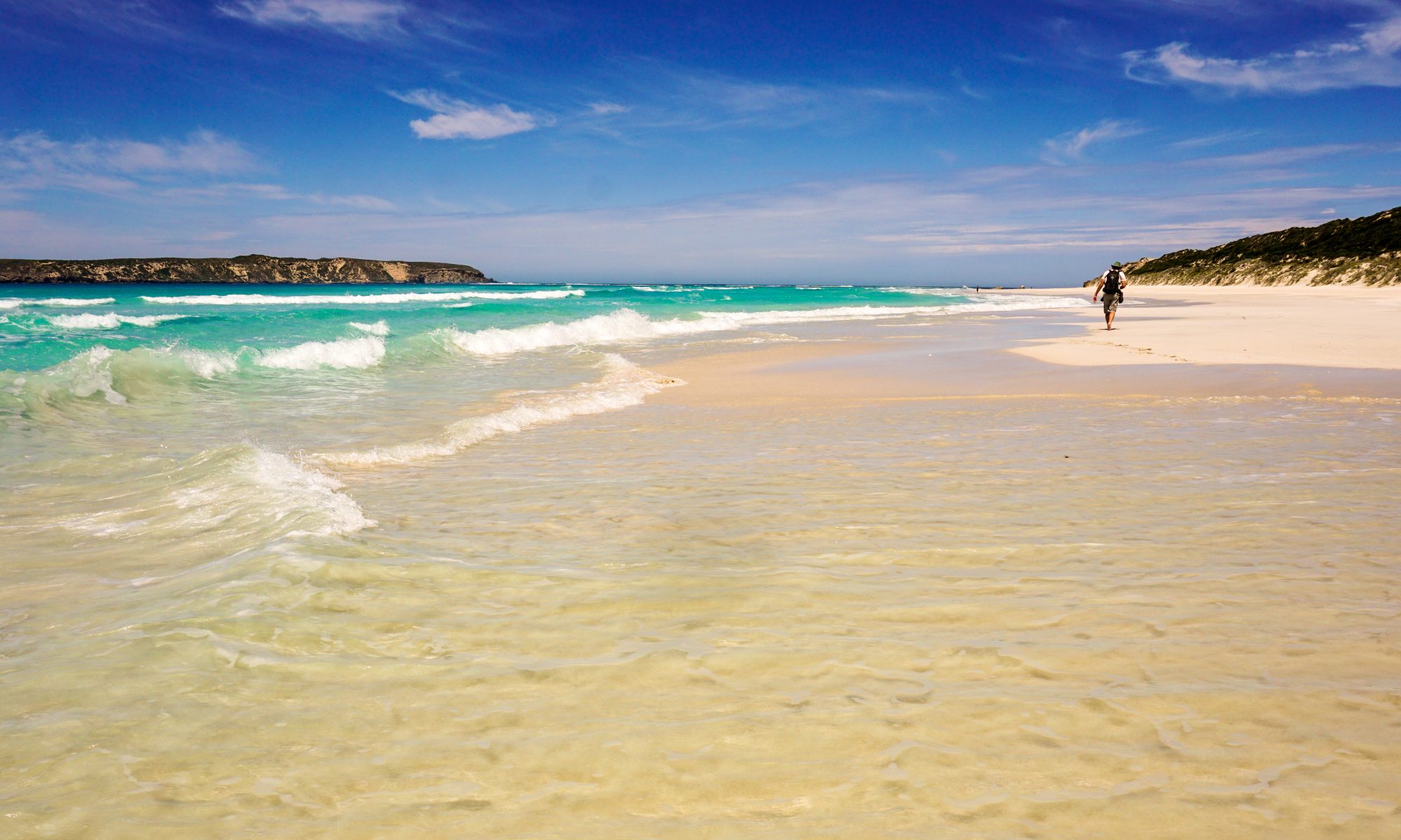 We were based a 15 minute drive from Lincoln National Park, and the next day we set off for what would be the first of several trips to explore this gem of a place. We hiked a loop trail with the zoom lens all ready, but Mrs A quickly changed back to the landscape lens though when we rounded this corner and were confronted with this awesome beach and glittering blue water.