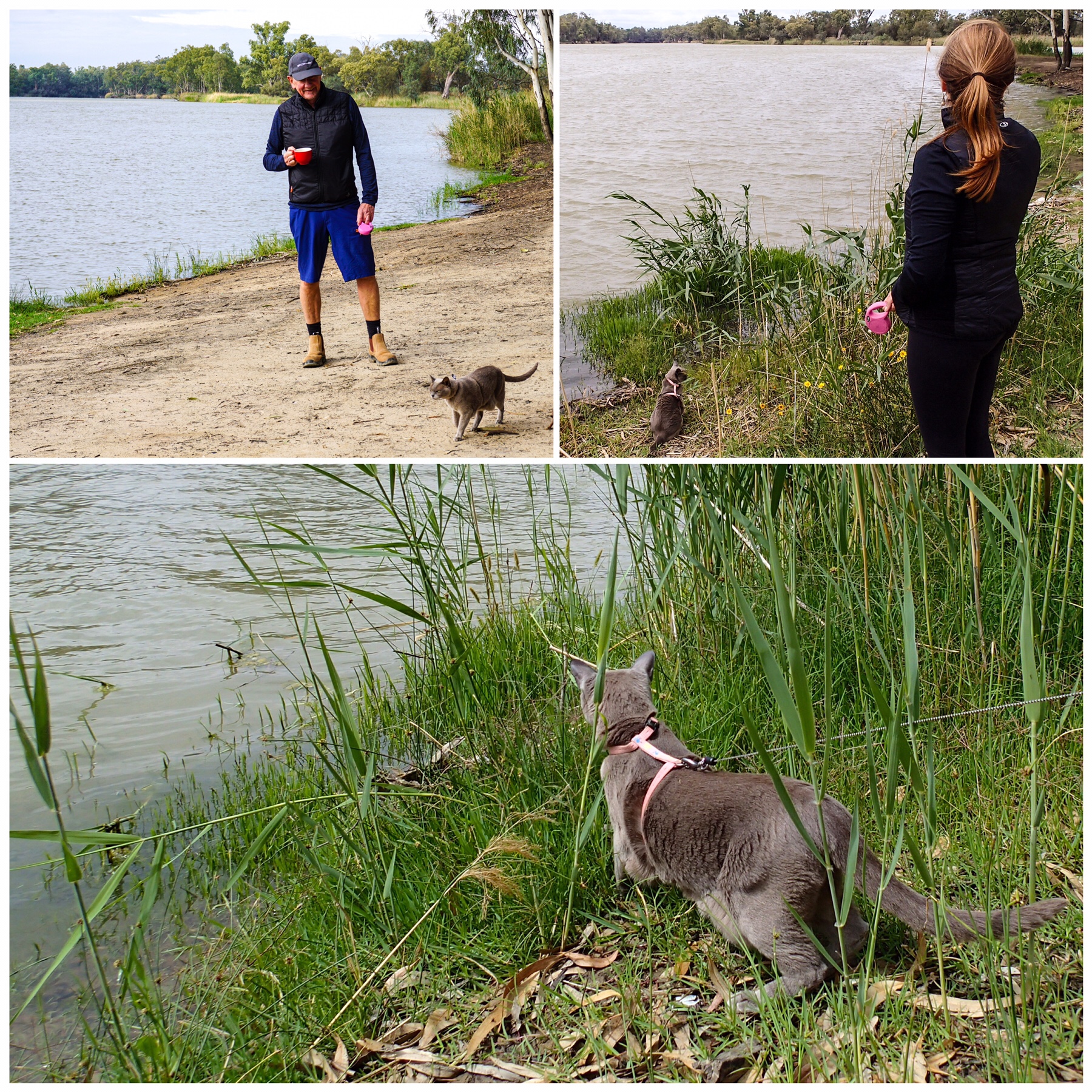 After a cuppa we headed out for a quick explore, with half an eye on the gathering storm clouds. We really have landed in a beautiful spot, a giant grey kanagaroo bounded off when he saw us, more cormorants were splashing in and out of a backwater of the Murray. We really like this location – it’s free to camp here too!