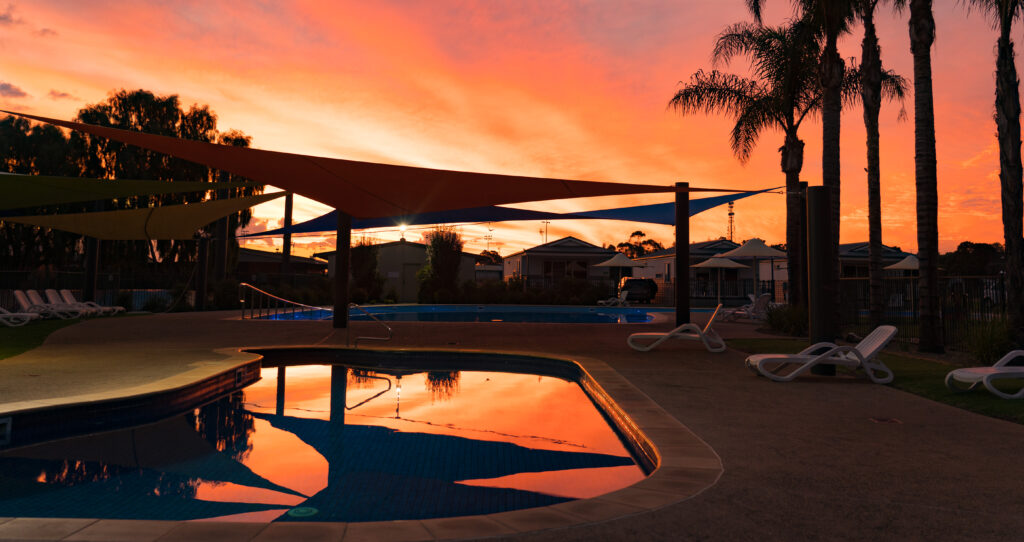 Berri had little to interest us to be honest. Its a small settlement based around the bridge of the Murray. We just needed to have a few days out of the dust of the Mallee country. And what happens on the first night? We have a dust storm 🙂 Another cleaning session in the caravan required! They have a lovely pool, and in the afternoon heat we retired to the cool of the water. The Murray’s muddy brown water, thanks to the carp, didn’t appeal.