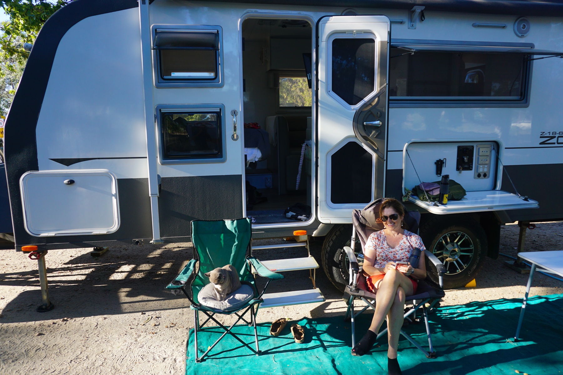 The Zone muster was held at Sambell Lake, at a caravan site there. The lake used to be an open cut gold mine in the 1800s, and during the 1920s was regenerated to create a nature reserve. As we drove in, a koala bounded across the road in front of us and swiftly clambered up a tree beside us. We then spotted our friends Diane and Mark waving enthusiastically in a crowd of other Zoners, and drove off to park up before joining them and saying hello to the others.