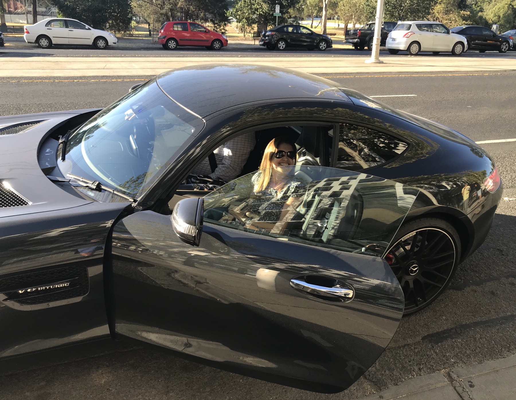 Owen returned from work early evening, and took us for a spin around the Albert Park Grand Prix track in his Mercedes AMG GT R (correct me if I’m wrong!) – a great ride…